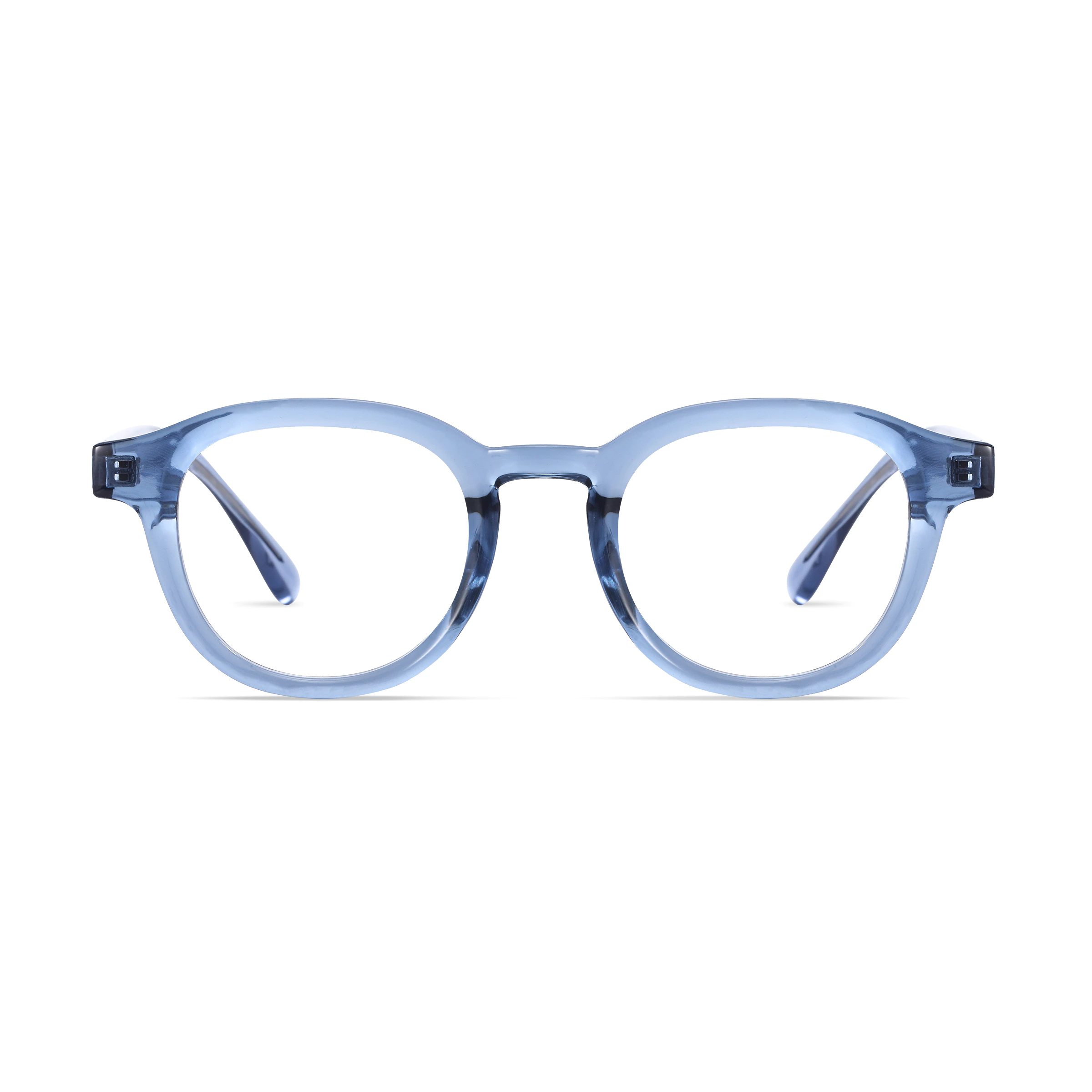 These oval transparent blue eyeglasses feature a fresh modern look with their soft blue hue and classic oval shape. The lightweight TR90 frame offers comfortable all-day wear while adding a touch of understated elegance to any outfit, perfect for both work and casual occasions.