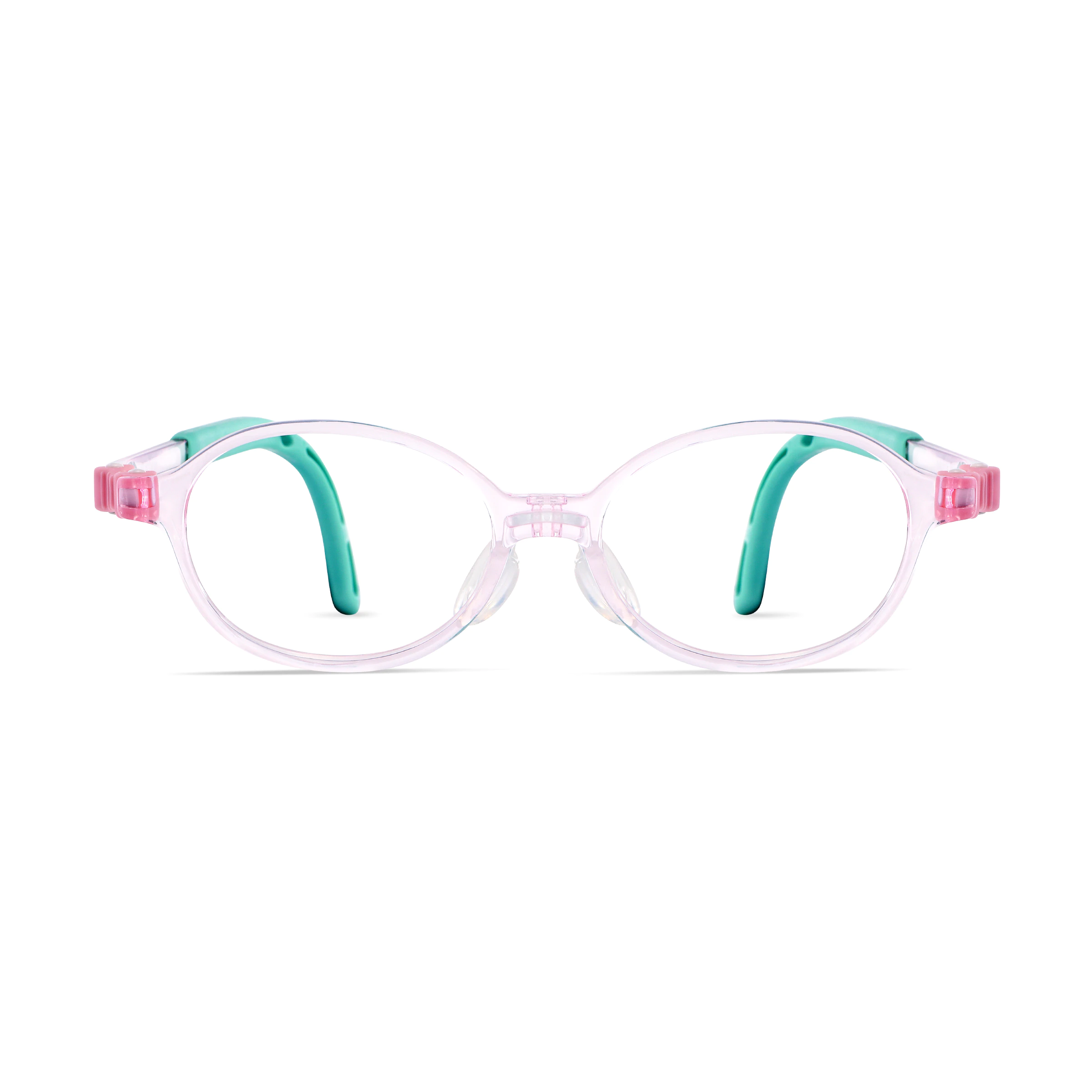 · Playful Color Match – Transparent pink frame with mint green temples for a sweet, fun look.