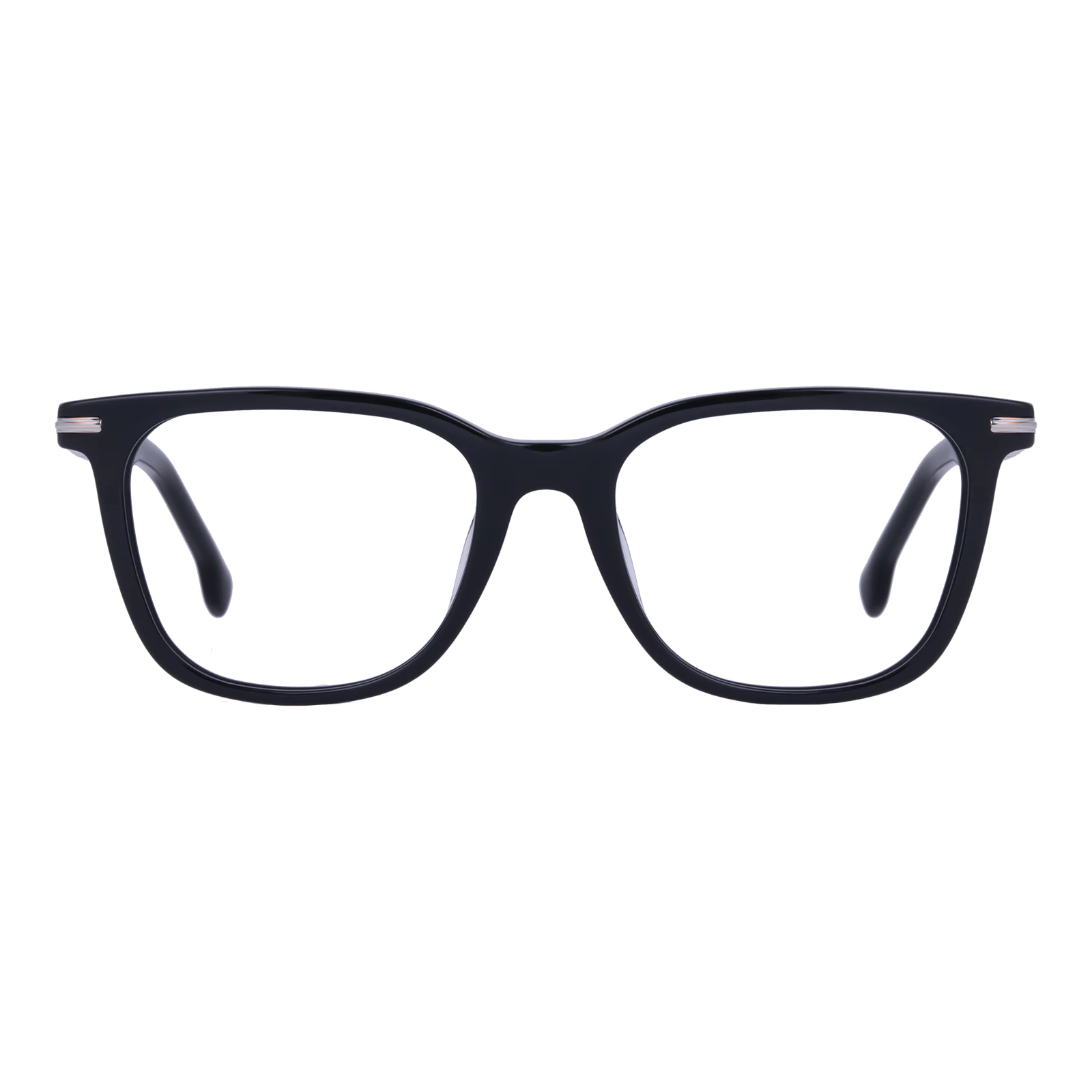 These black square eyeglasses combine the durability of acetate with a timeless design. The full-rim structure ensures comfort and sturdiness, and the bold black color exudes confidence and sophistication, perfect for any occasion.