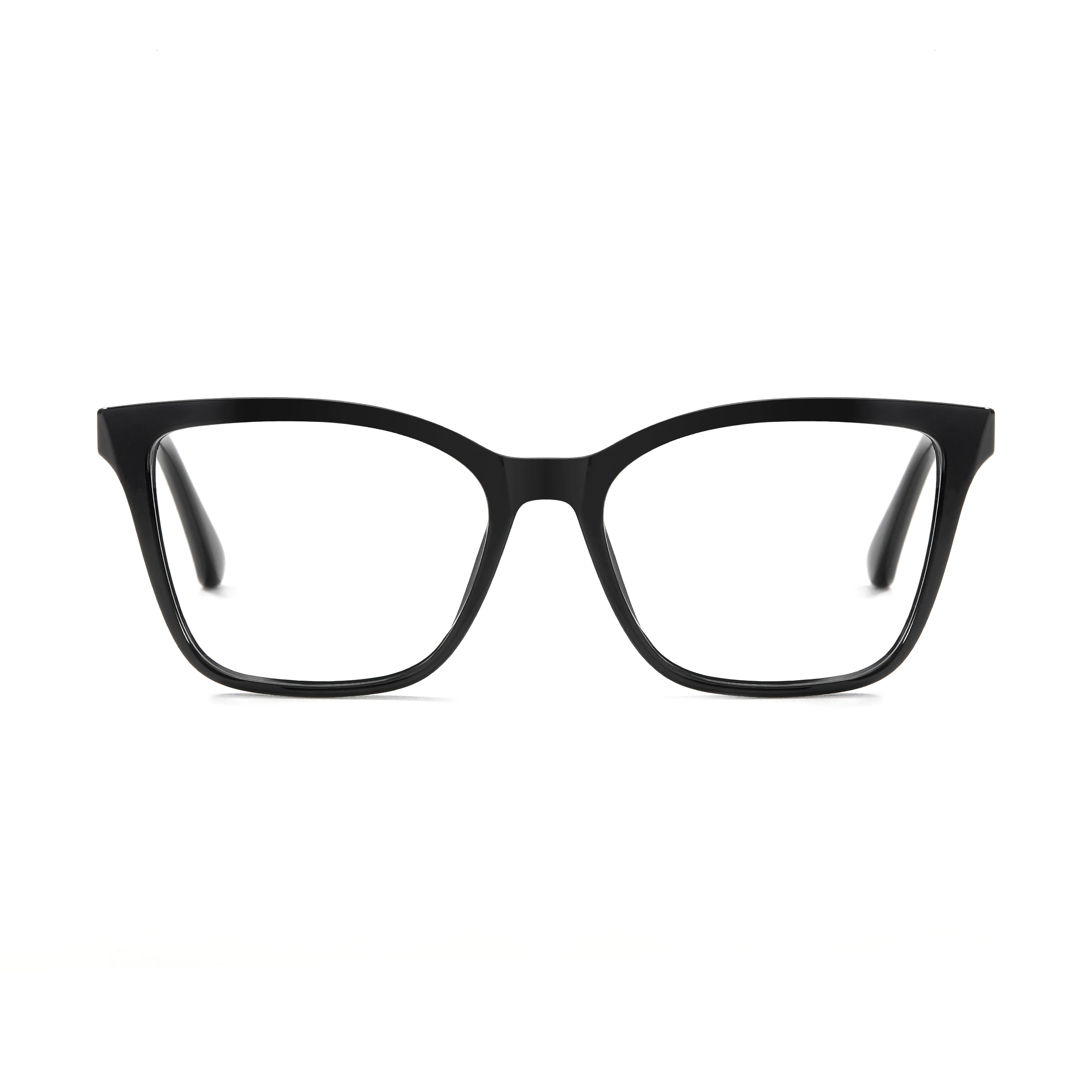 Elegant yet understated, these square eyeglasses feature a glossy black frame with delicate gold detailing on the temples. A perfect blend of classic structure and feminine charm—ideal for those who appreciate subtle sophistication.