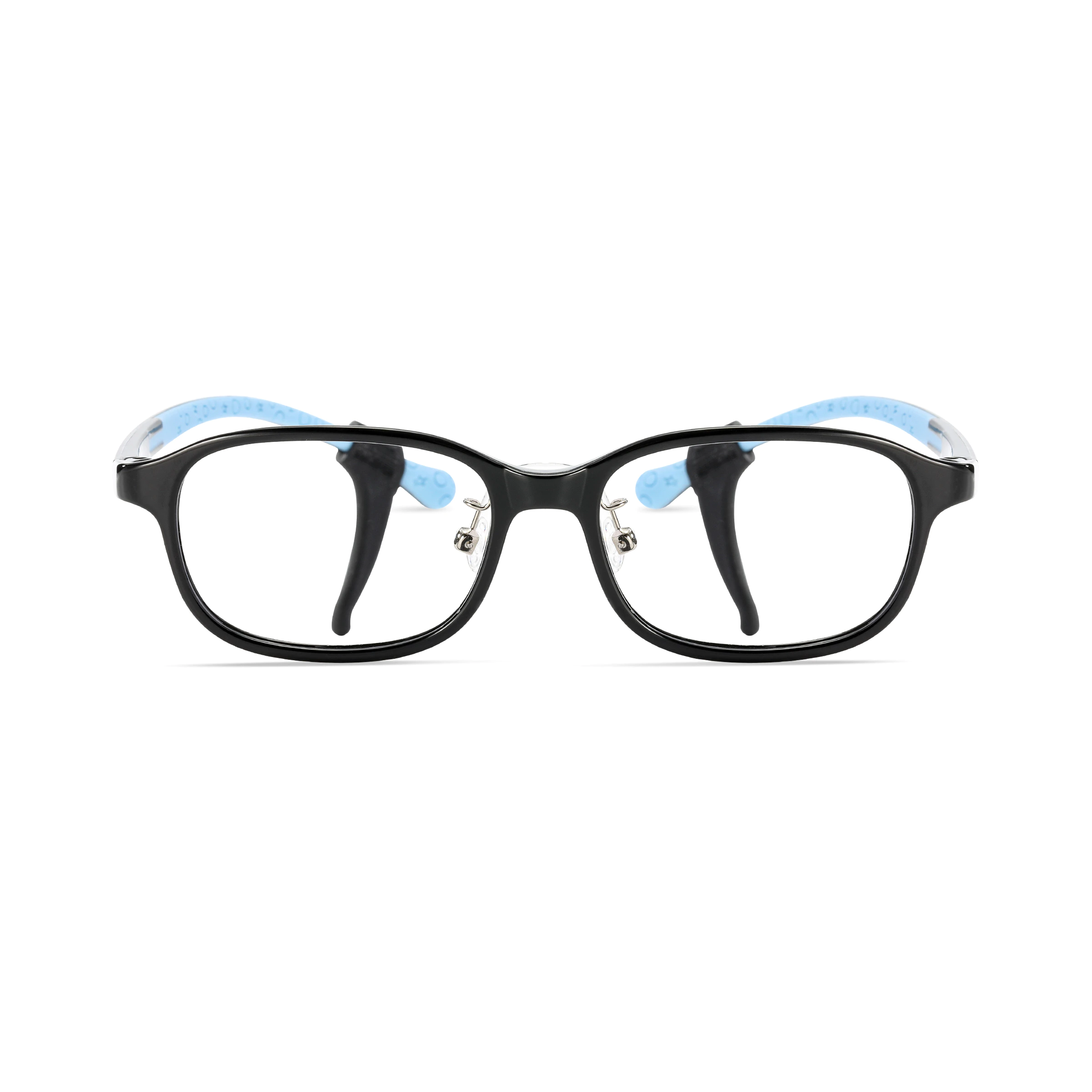 · Durable & Sporty Look – Classic black frame with playful blue temples, perfect for active kids.