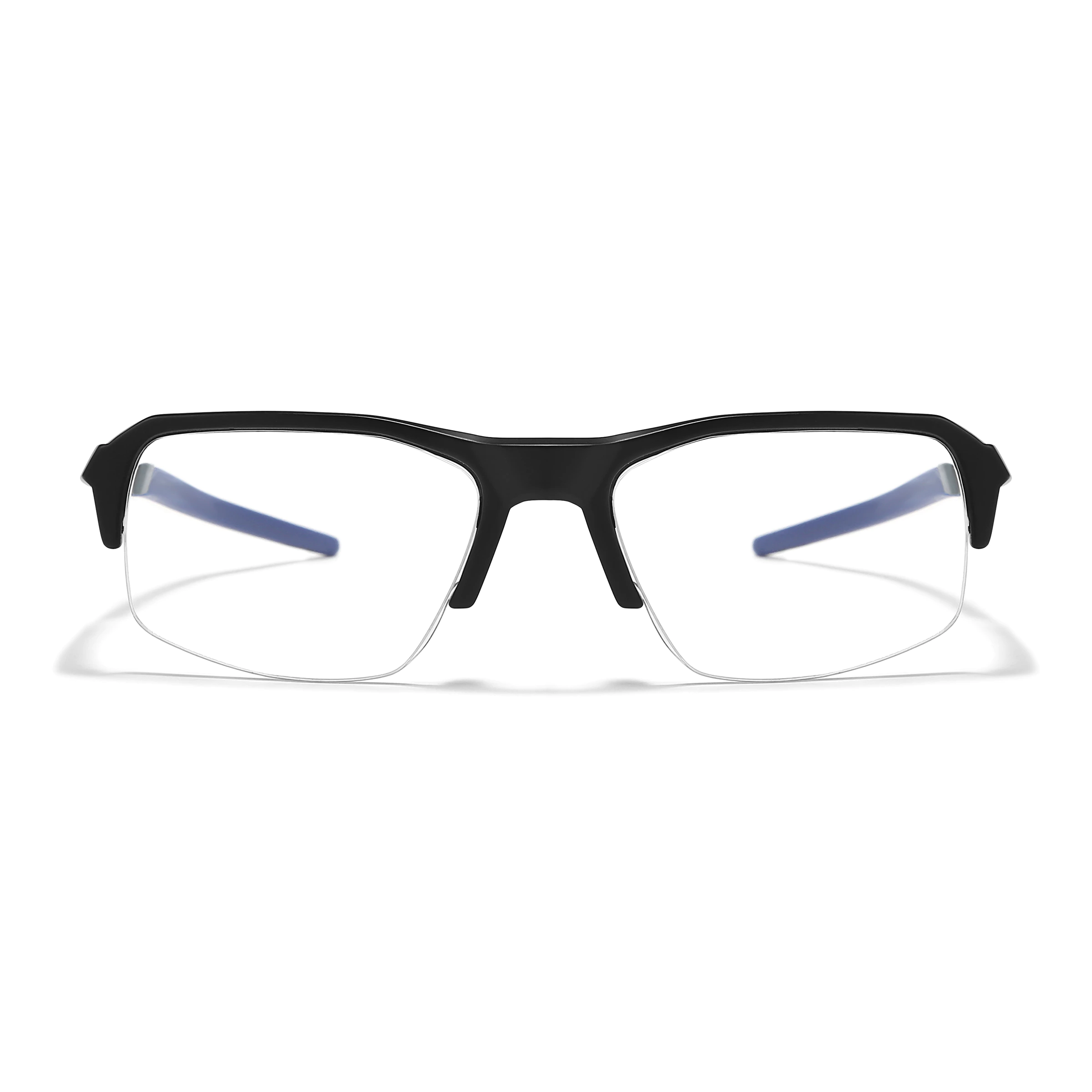 These black and blue semi-rim sports glasses blend sporty energy with reliable function. Featuring a TR90 and metal build for durability, they offer lightweight comfort and a dynamic design suited for active, everyday lifestyles.