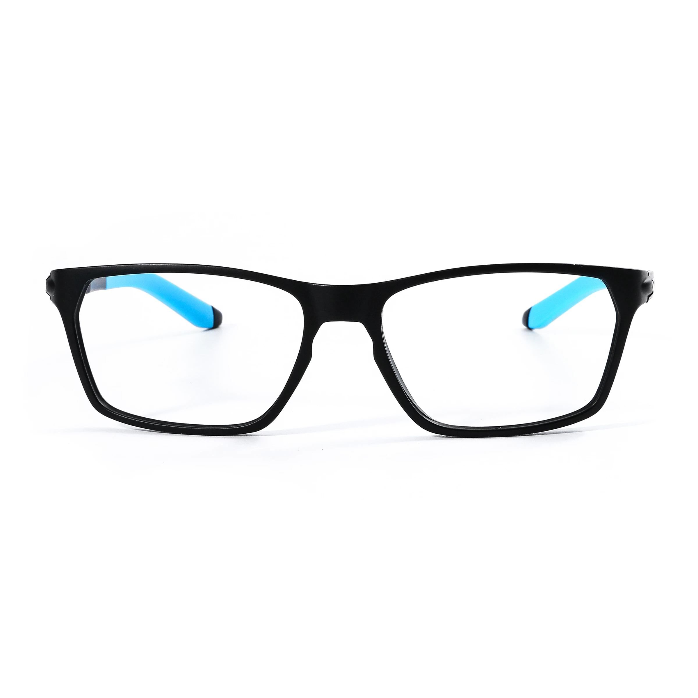 Sleek and sporty, these black and blue TR90 glasses are designed with a durable full-rim rectangular frame. Lightweight and comfortable, they’re an excellent choice for workouts, travel, and everyday use.