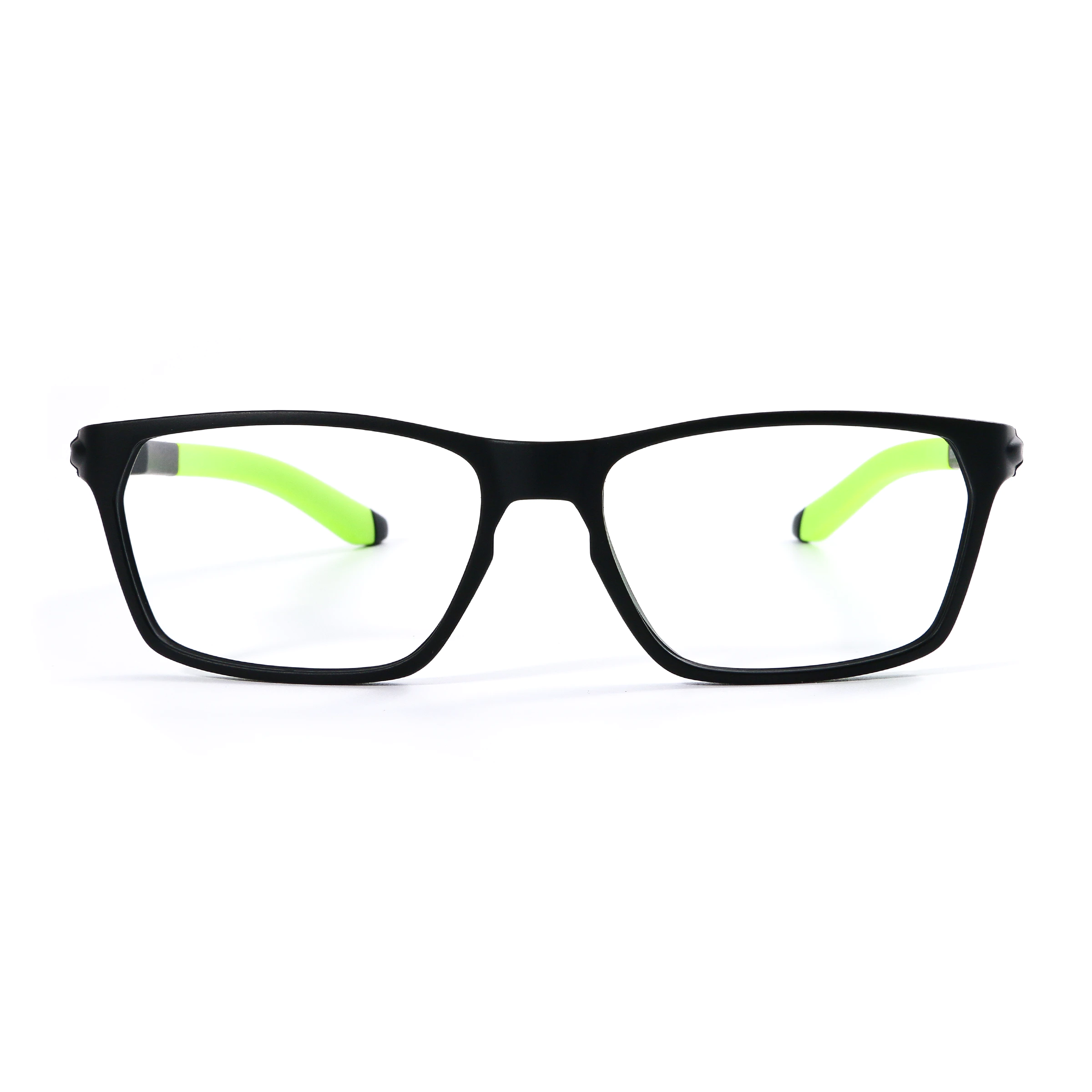 Featuring a bold black and green color combination, these TR90 sports glasses bring together contemporary style and ergonomic performance. The full-rim design offers reliable coverage and a stable fit during any activity.