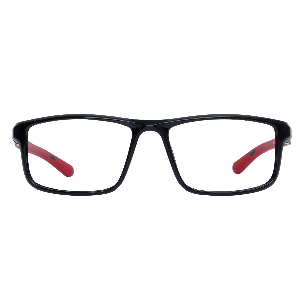 The striking contrast between black and red creates a dynamic and energetic look. Made from TR material, this full-rim rectangular frame ensures a secure fit and lasting durability, ideal for those who seek both style and performance in their sports eyewear.