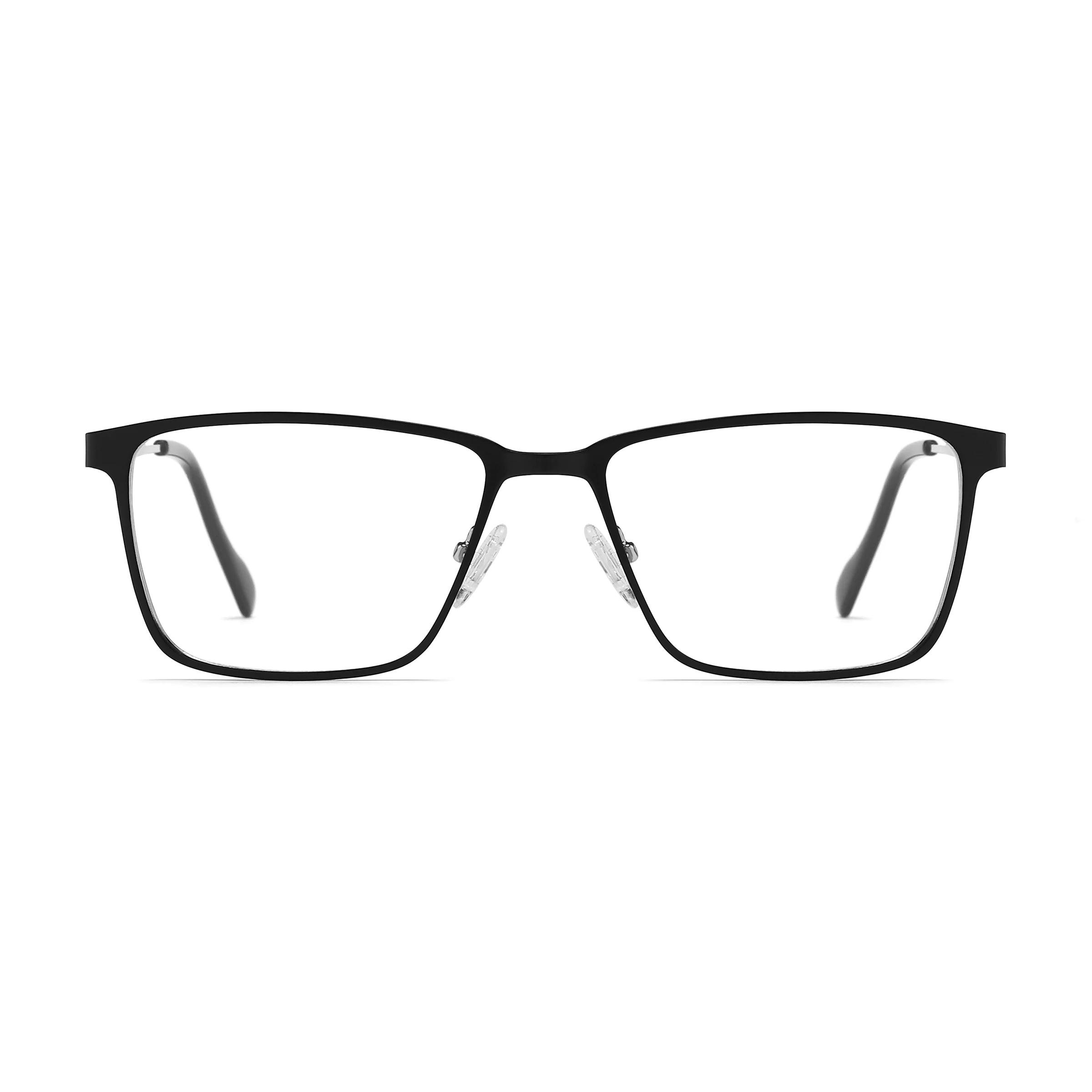 Crafted from premium metal, these black and silver rectangle glasses offer a sleek, modern business look. The clean color contrast enhances the classic silhouette, making them ideal for professional settings. Lightweight yet durable, they provide all-day comfort for men and women alike.