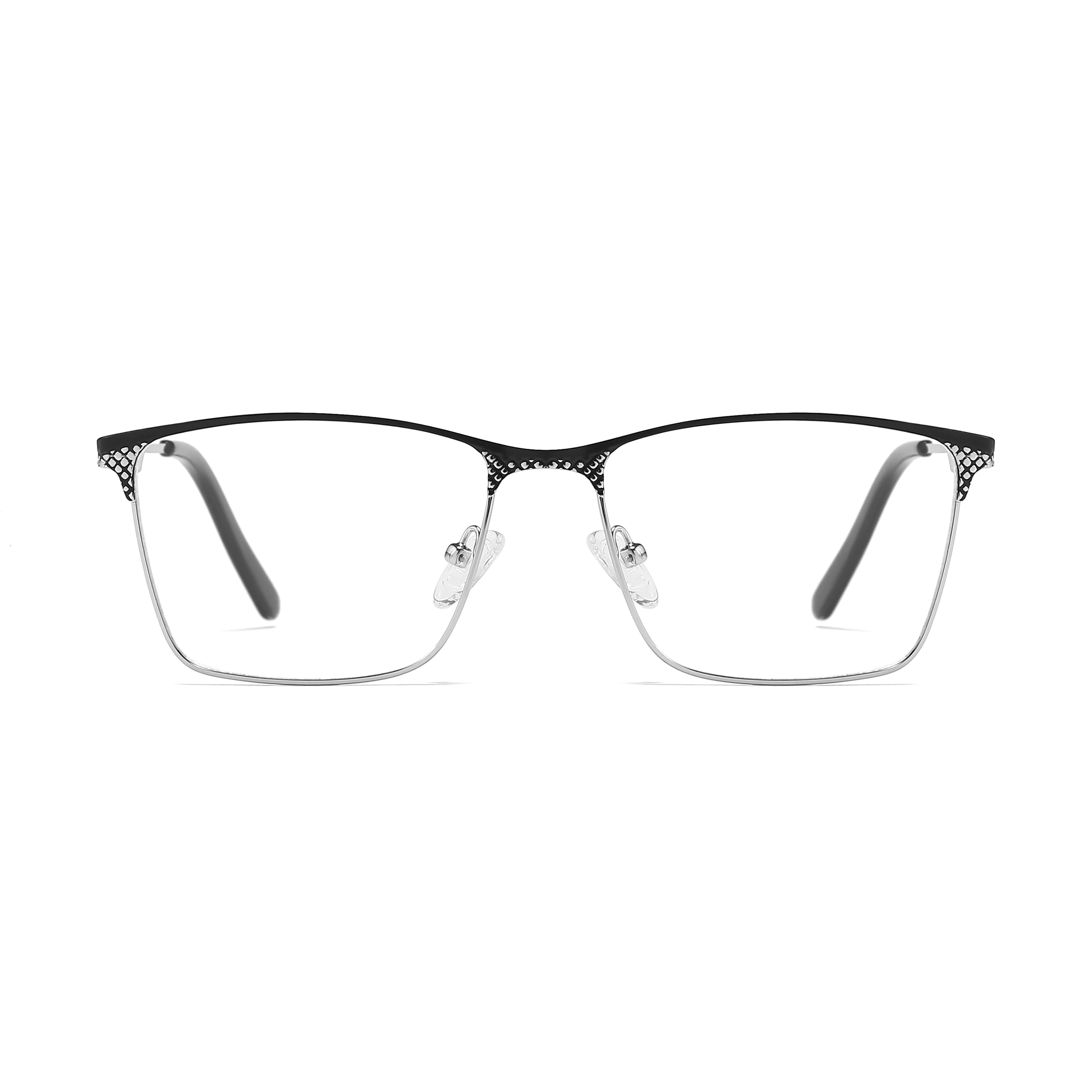 These unisex rectangle glasses feature a timeless black silver metal frame, combining classic style with professional elegance. Designed for durability and comfort, they are perfect for daily business wear, offering a refined look that complements any outfit.