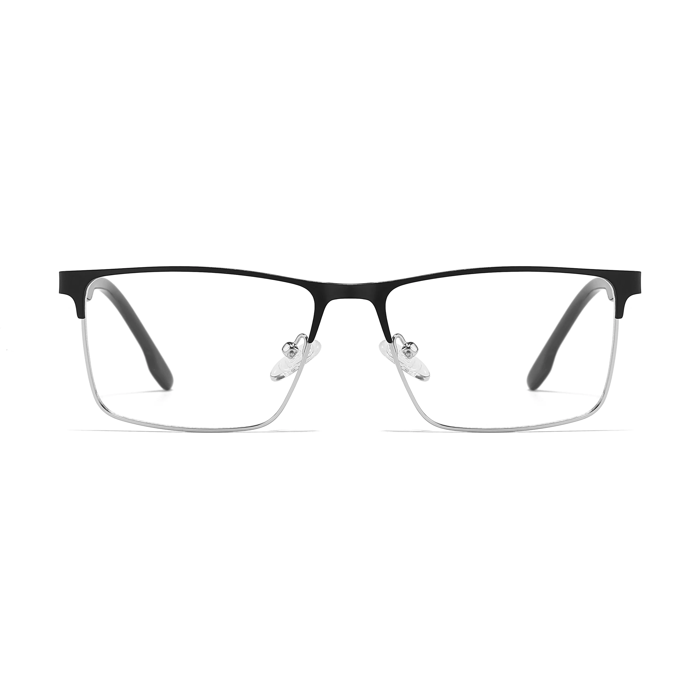 Make a sharp statement with these black and silver rectangle glasses, crafted for the discerning professional. The full-rim metal frame offers lasting durability and a sleek, modern aesthetic, while the balanced rectangular shape ensures a refined silhouette. Ideal for business and daily wear, this design embodies confidence, clarity, and classic style.