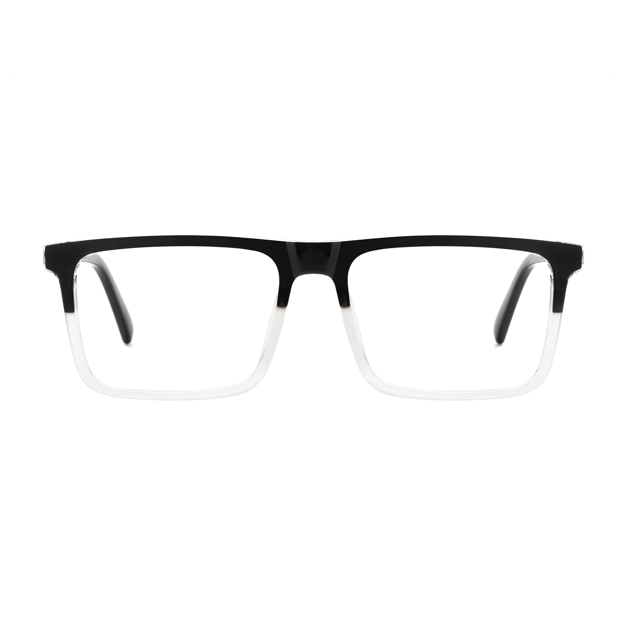 Bold contrast frames with sleek black upper and transparent lower halves. A perfect fusion of architectural minimalism and wearable sophistication for the modern aesthetic.