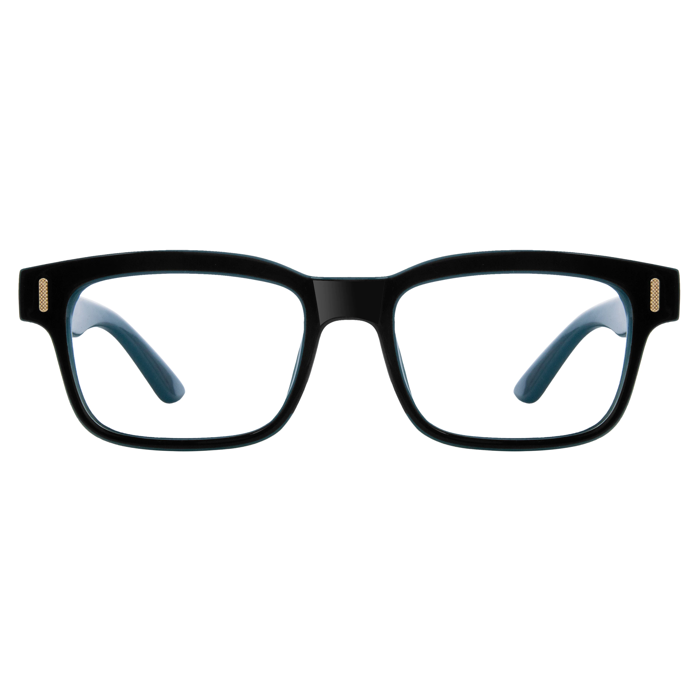 The Blue/Black rectangular glasses add a subtle touch of color to the classic design. With a deep blue accent blending seamlessly with the bold black, these frames are perfect for those who want to showcase understated style. Great for casual and semi-formal occasions alike.