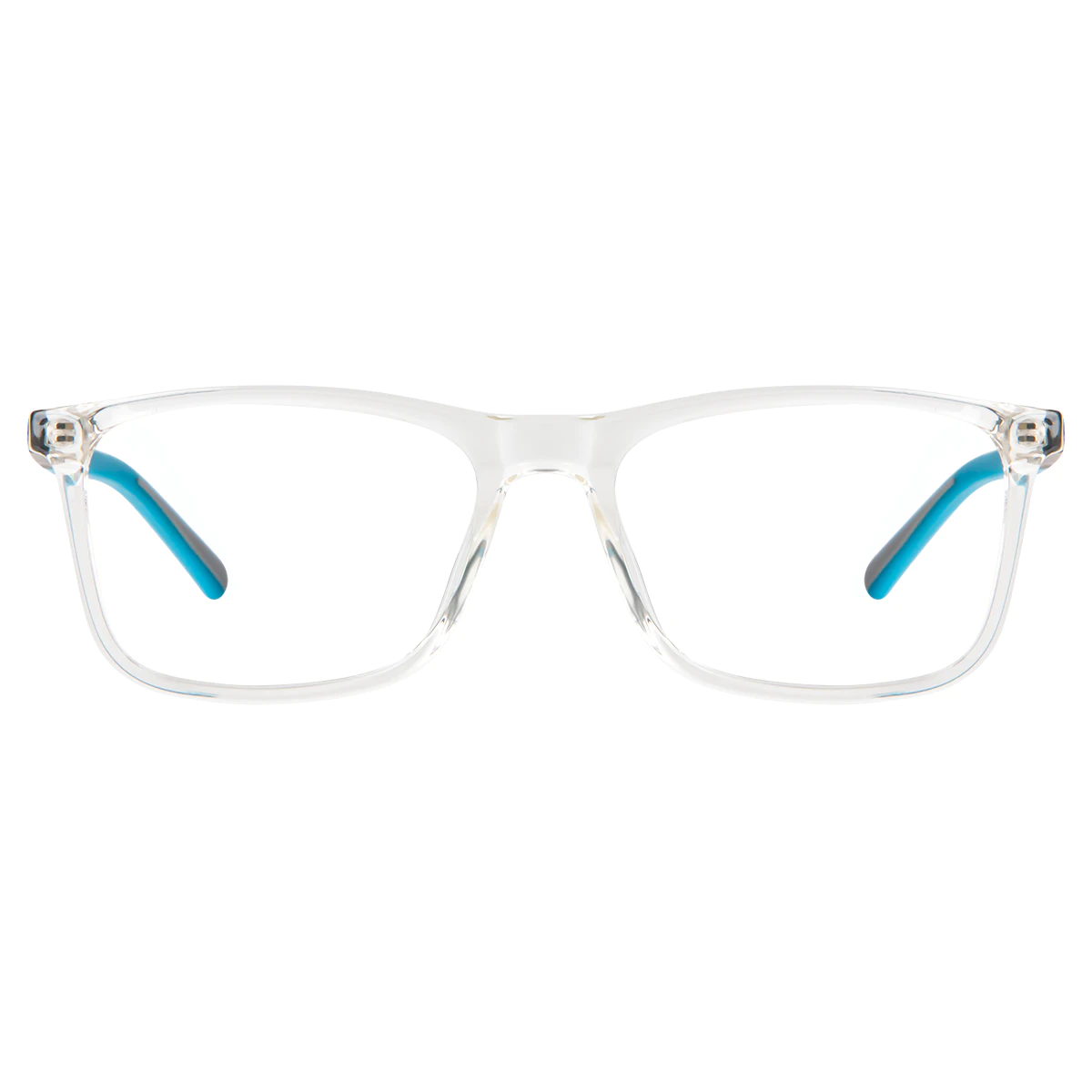 These transparent frames with blue accents bring a fresh and modern feel to your look. The subtle blue adds just a hint of color, making them perfect for brightening up any outfit without going overboard.