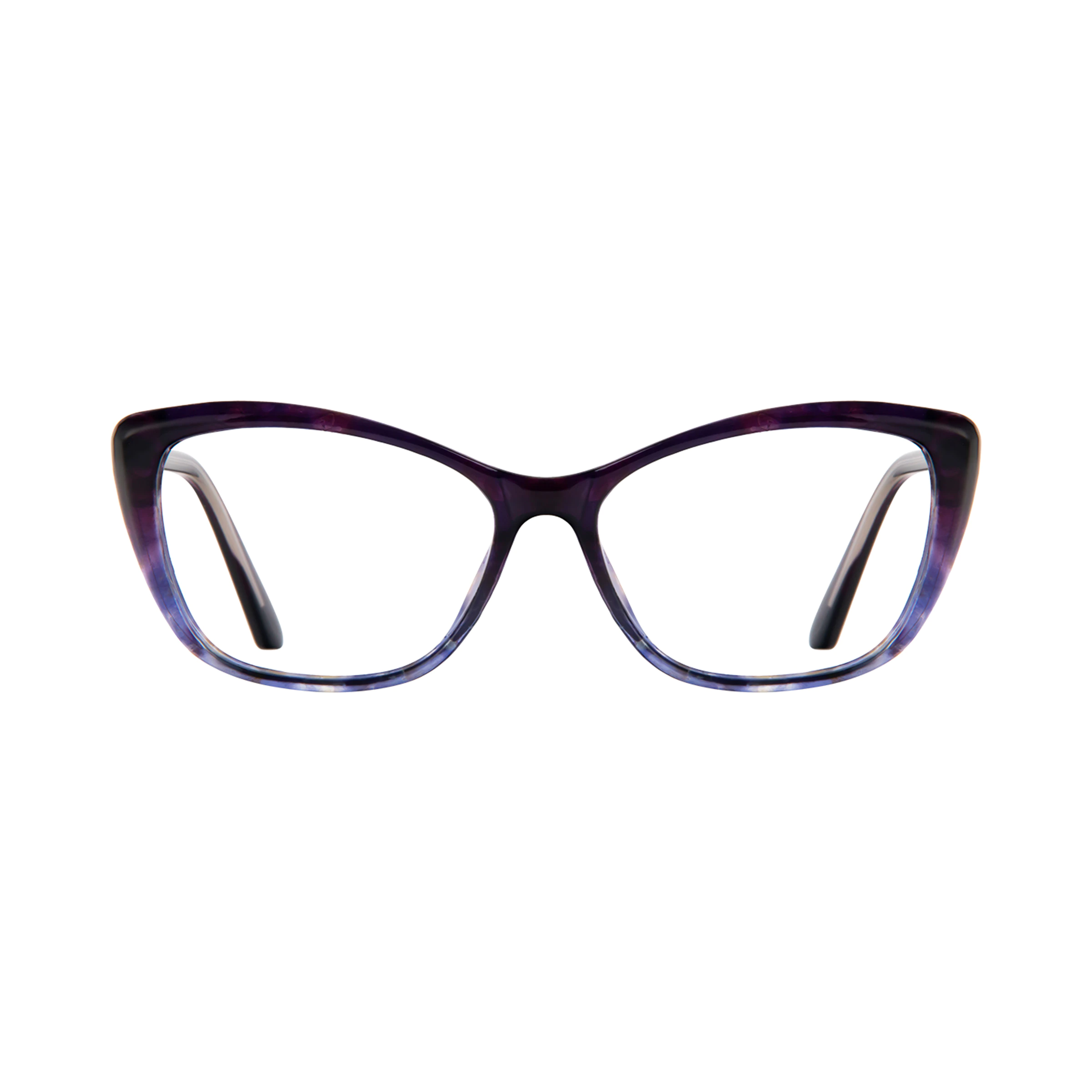 Bold purple cat-eye glasses make a statement with their vibrant hue and distinctive shape. The full-rim design adds both style and structure, ideal for those who want to stand out with flair.