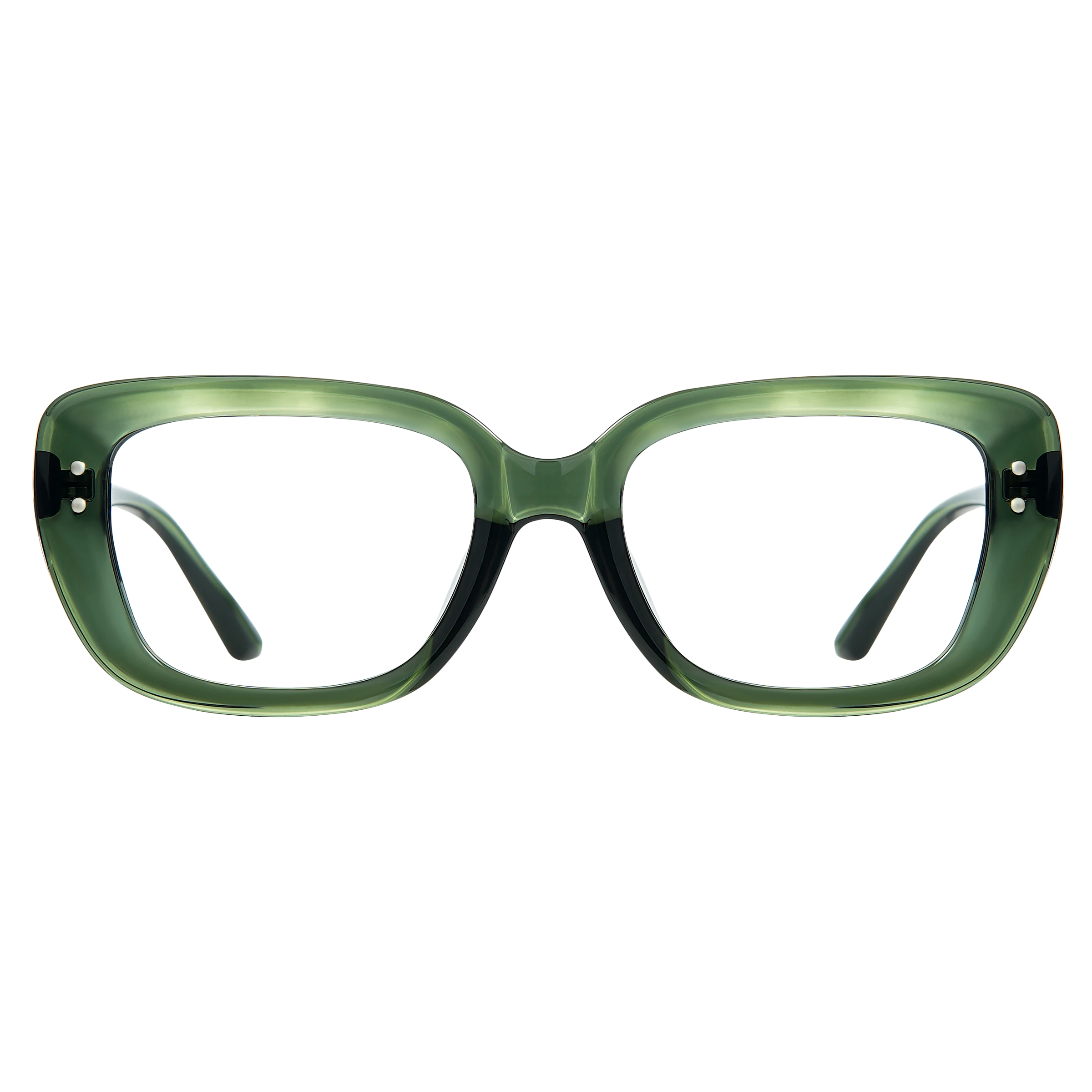 Green frames accented with black detailing create a chic and timeless look, blending contemporary style with classic tones.