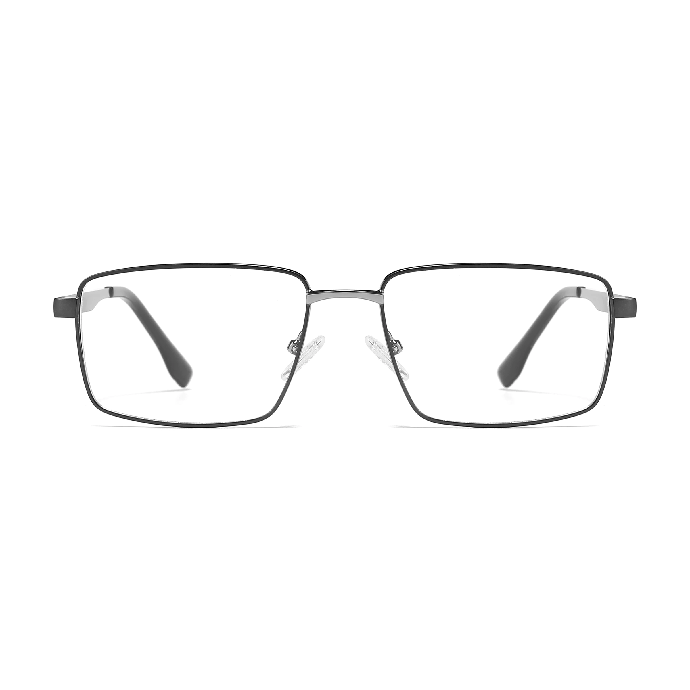 Command attention with these bold rectangle gunmetal eyeglasses. The sleek gray-black frame combines urban edge with refined professionalism, featuring sharp angles and a slim silhouette for modern sophistication.
