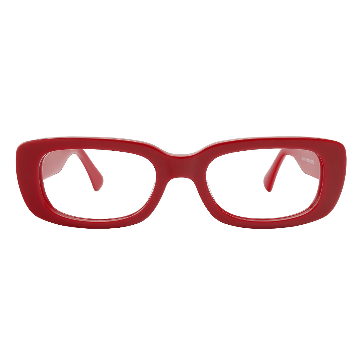 Add a pop of color to your style with this vibrant red full-rim rectangular frame. Made from durable acetate, it combines a trendy design with practical comfort. The striking red hue is perfect for those who want to stand out and make a statement, whether at work or during leisure activities.