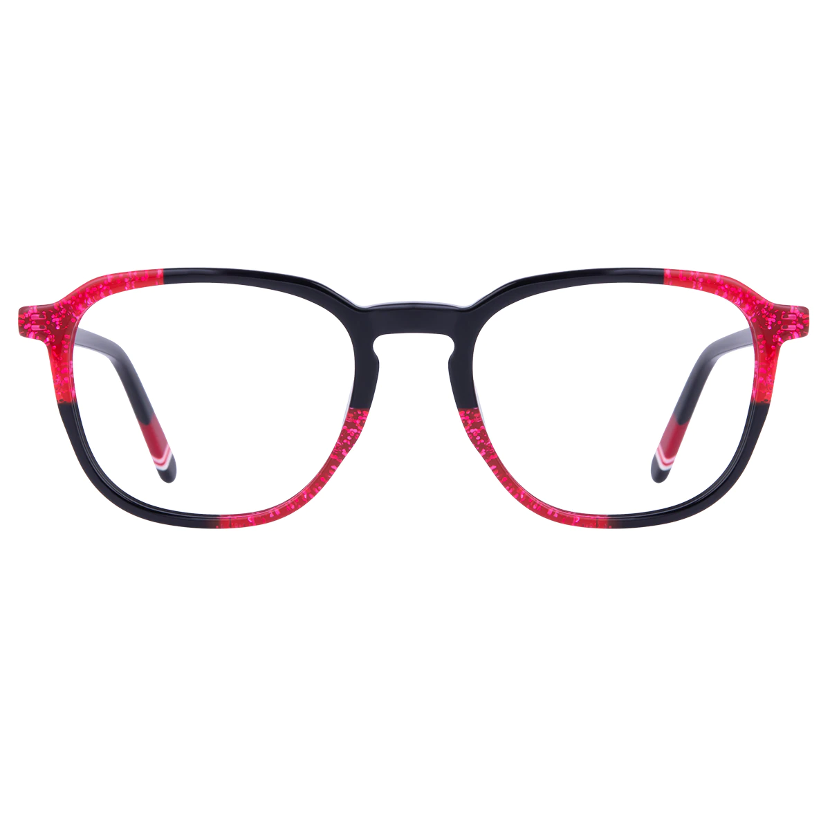 Made from durable acetate, these glasses promise both style and comfort. The full-rim design provides a secure fit, while the contrasting colors enhance the frame's unique appeal. Lightweight and comfortable, they are ideal for daily wear.