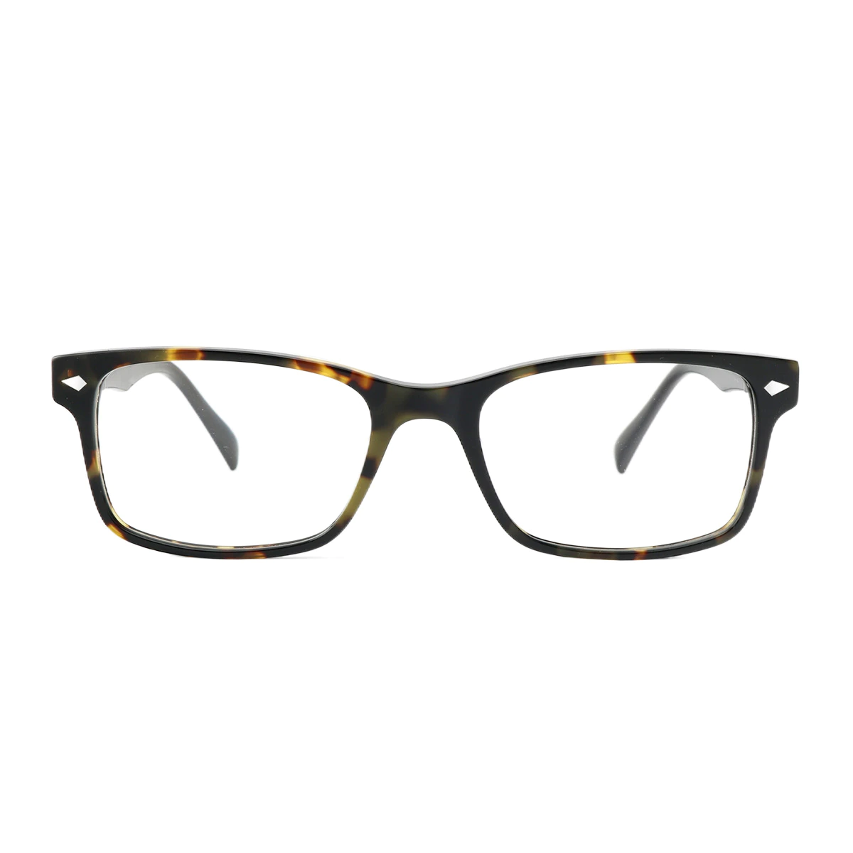 Combining black and tortoiseshell patterns, this full-rim square frame blends classic sophistication with a trendy edge. The acetate material adds a touch of luxury while offering lasting comfort and durability.