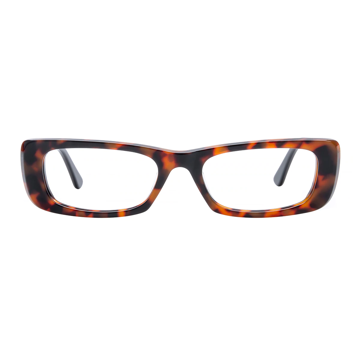 Enjoy a distinctive contrast with these tortoiseshell-black rectangle eyeglasses. The elegant blend of tortoiseshell and black acetate creates a sophisticated look that stands out with classic vintage charm.