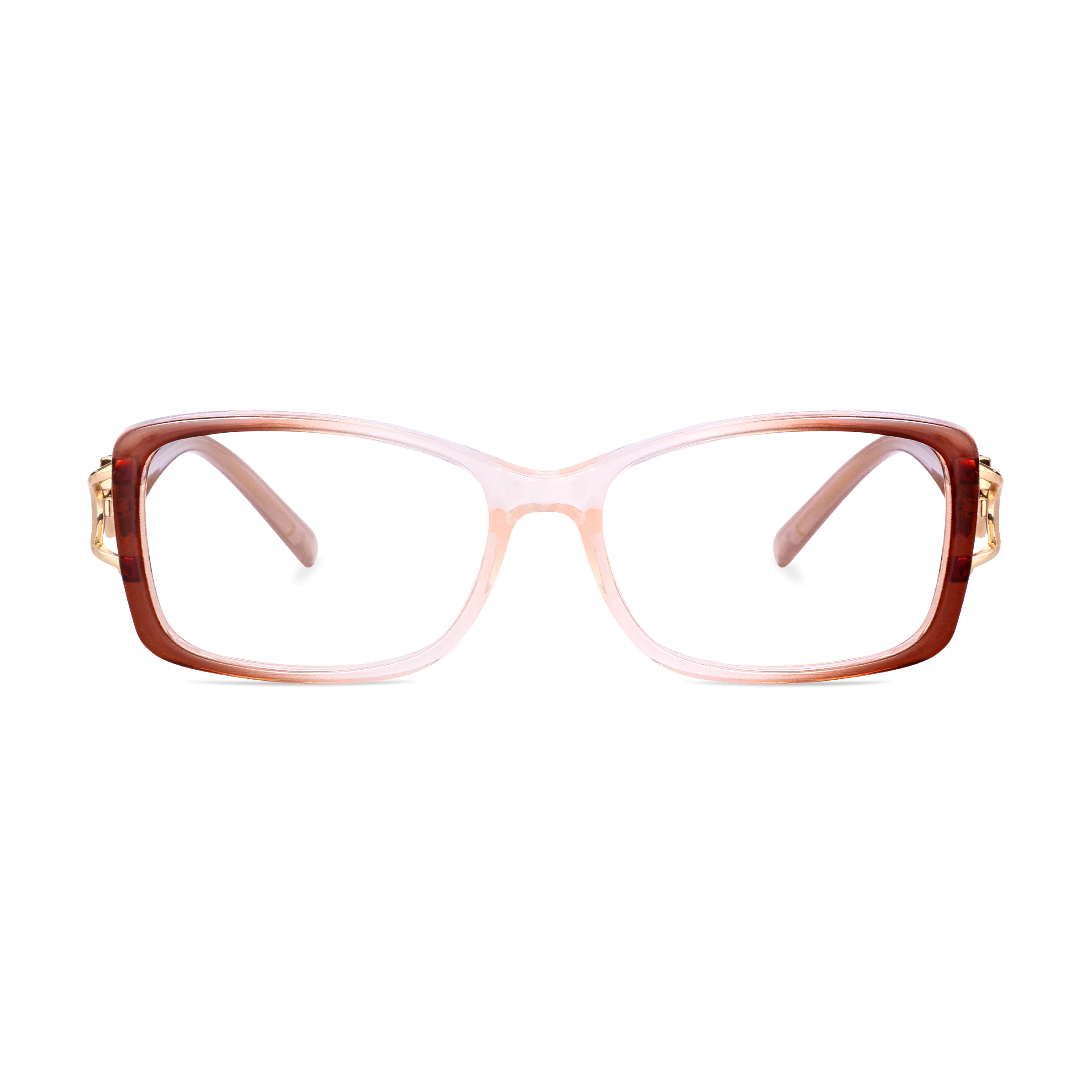 These rectangular eyeglasses feature a stylish transparent amber frame made of TR90 and metal. With a full-rim design, they offer a sophisticated and versatile look, perfect for both professional and casual daily wear.