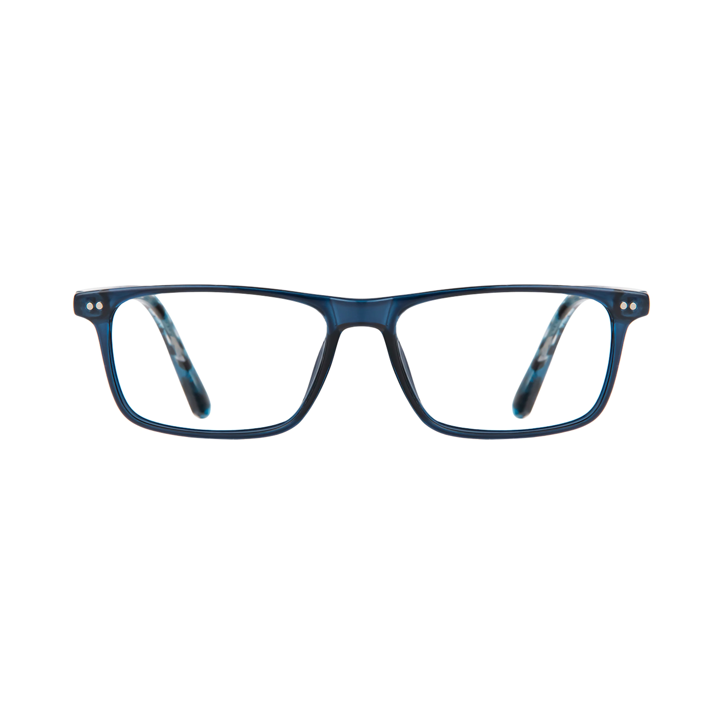 The rectangular full-rim shape provides excellent lens coverage and protection. These glasses are designed to reduce glare and improve visual clarity, making them a practical choice for daily use.