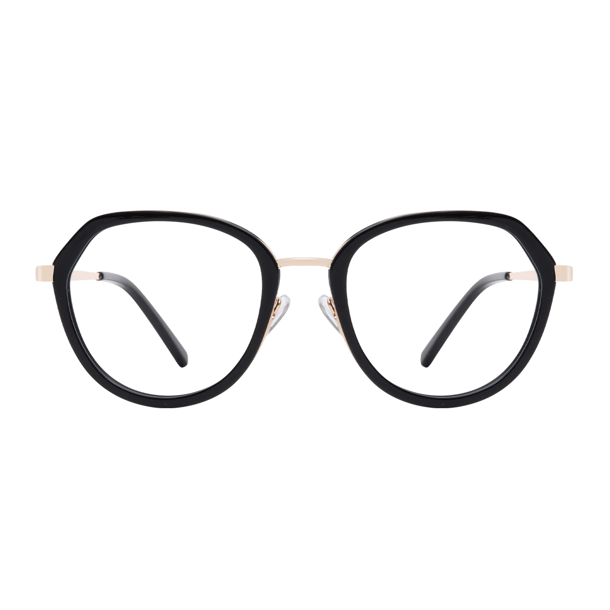 Refresh your eyewear collection with our trendy black geometric glasses. The full-rim design crafted from sleek black PC and metal creates a striking, modern aesthetic. Ideal for those who appreciate a contemporary and bold statement, these glasses offer both durability and style, perfect for any fashion-forward wardrobe.