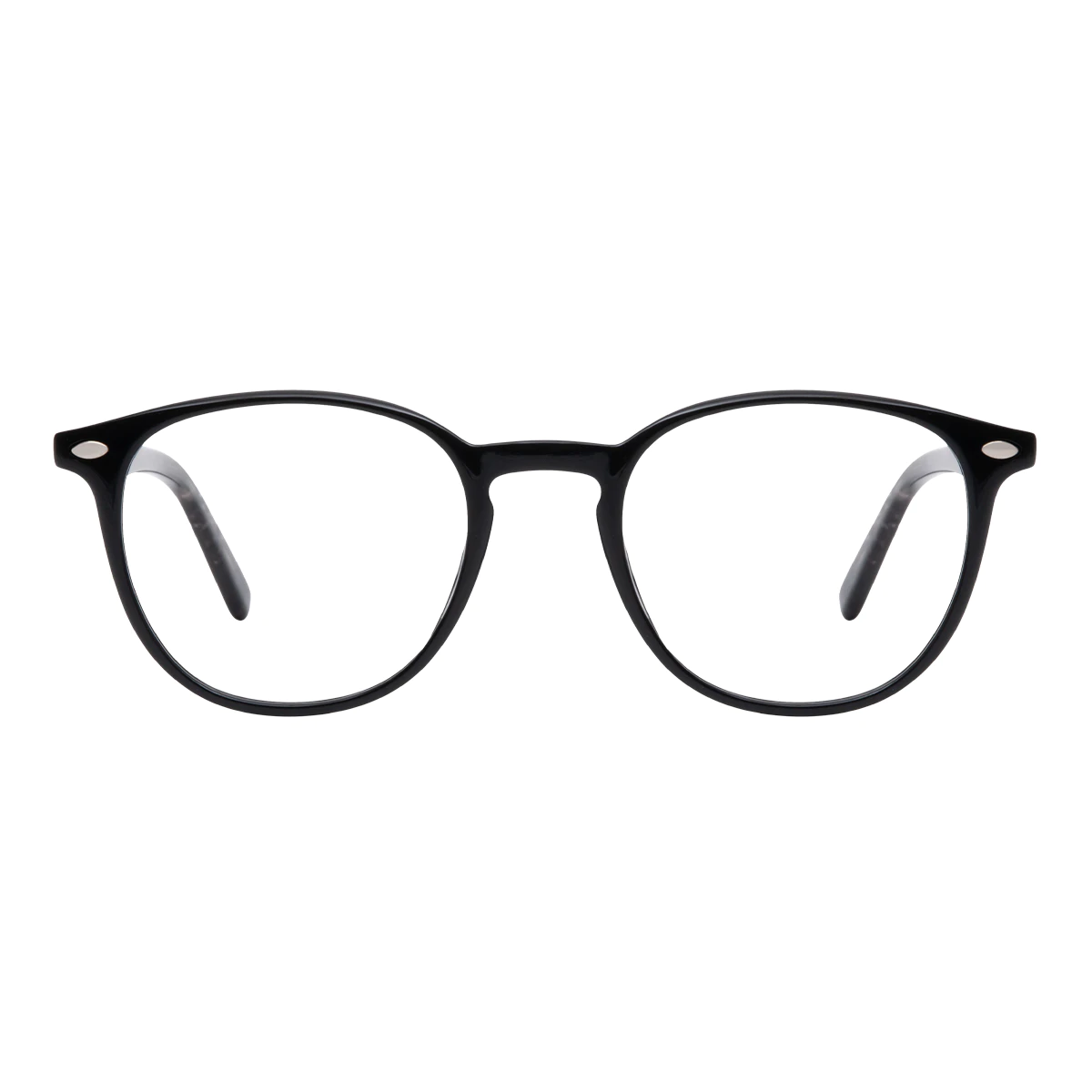 These Black round glasses offer a timeless, classic look with a vintage twist. The black acetate frame provides a sleek and professional appearance, perfect for any setting from the office to social events. Full-rimmed for durability and comfort, these glasses ensure a refined style that complements any outfit while delivering lasting comfort.