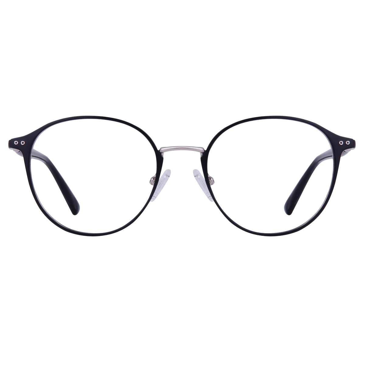 These full-rim round glasses in black and silver combine classic and trendy styles for a versatile and sophisticated look. The sleek black front contrasts beautifully with the silver temples, creating a bold yet elegant design. Crafted from high-quality metal, these glasses offer both durability and lightweight comfort for everyday wear. Perfect for those who want a chic and modern accessory that adds a touch of refinement to any outfit.