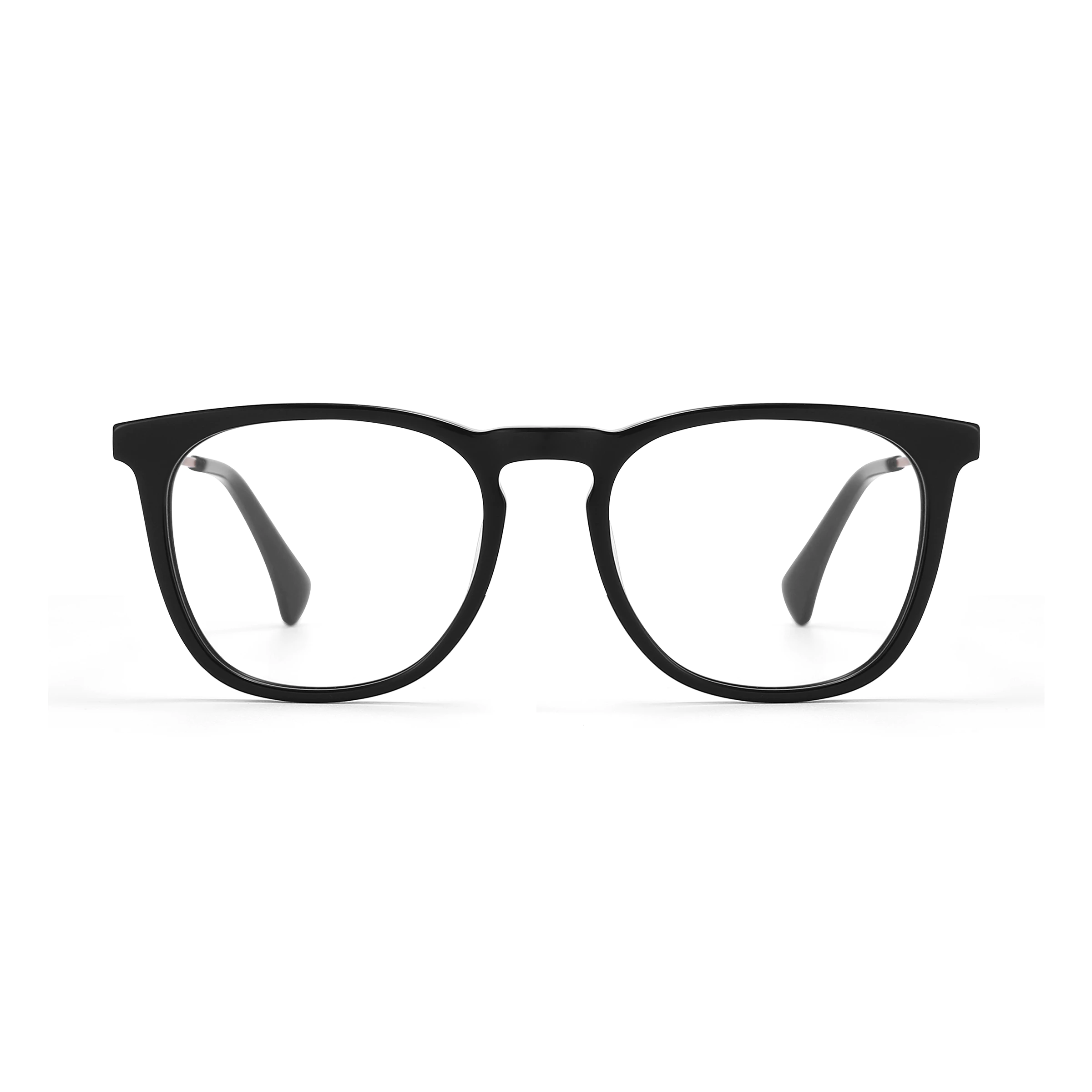 These glasses boast a seamless fusion of metal and acetate, showcasing a sleek square design that is both refined and striking. The full-rim front is crafted in bold black acetate, accented with textured metallic details for a touch of sophistication. Perfect for everyday wear, this timeless black frame adds a versatile and elegant edge to any look.