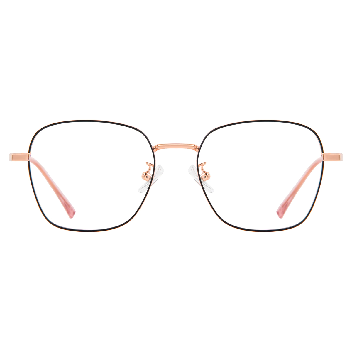 Distinctive pink gold-black eyewear features a striking contrast that enhances the timeless square frame. Crafted from high-quality metal, these glasses are designed to offer both resilience and a unique visual appeal.