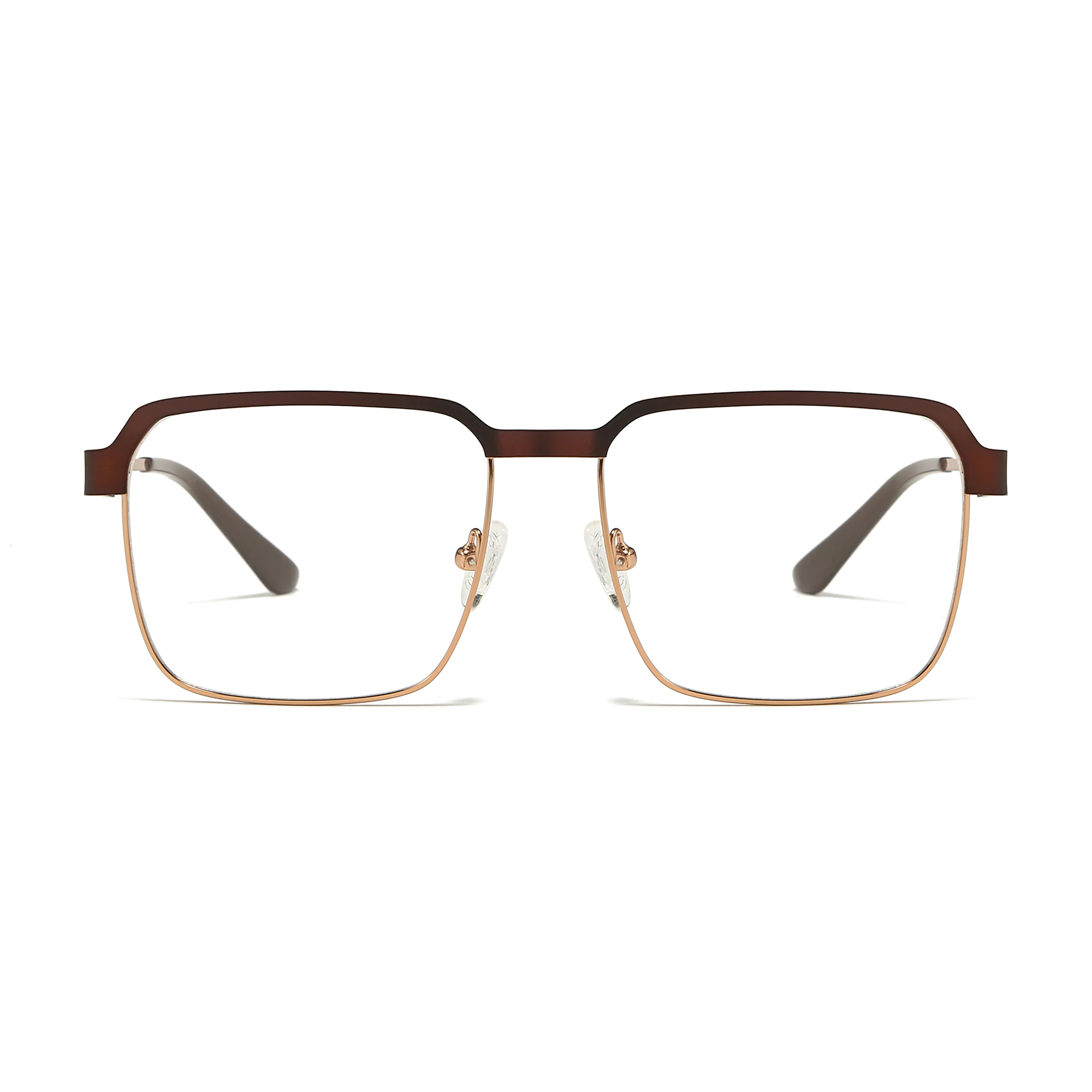 Designed for the professional man, these square metal glasses feature a rich brown and golden finish that combines classic refinement with modern flair. The full-rim frame ensures durability and structure, while the square shape enhances facial balance. Ideal for daily business wear, they deliver comfort, sophistication, and timeless style in one.