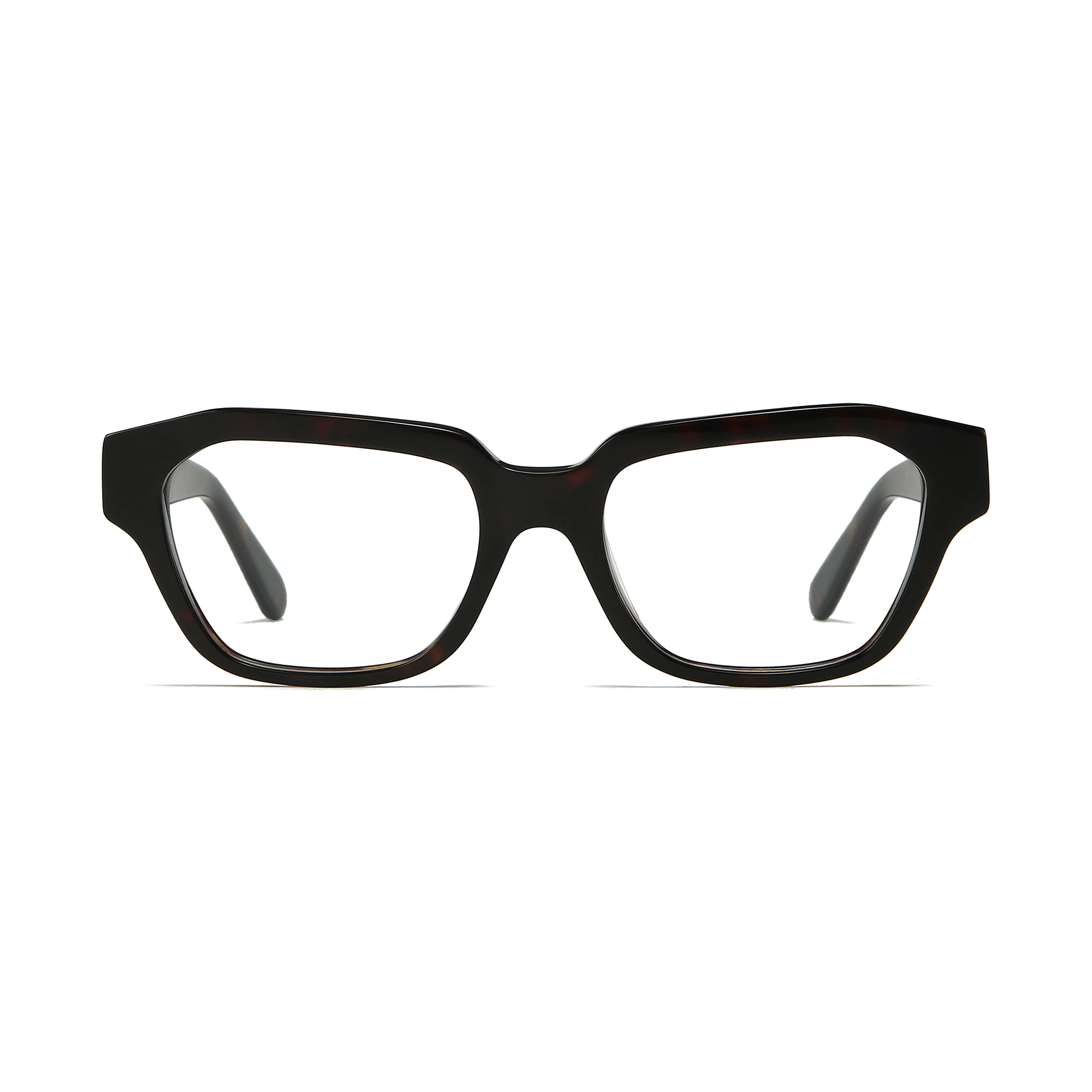 Bold diamond-shaped frames with chunky black tortoiseshell pattern for edgy sophistication. Lightweight acetate construction ensures style and comfort. These square dark tortoiseshell eyeglasses redefine modern vintage aesthetics.