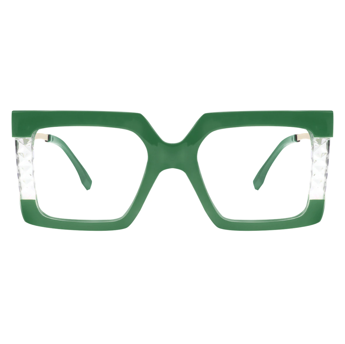 The Green full-rim square glasses bring a refreshing pop of color to your eyewear collection. The vibrant green PC frame, paired with sleek metal accents, creates a bold and contemporary design. Perfect for casual outings or creative workspaces, these glasses are lightweight and durable.