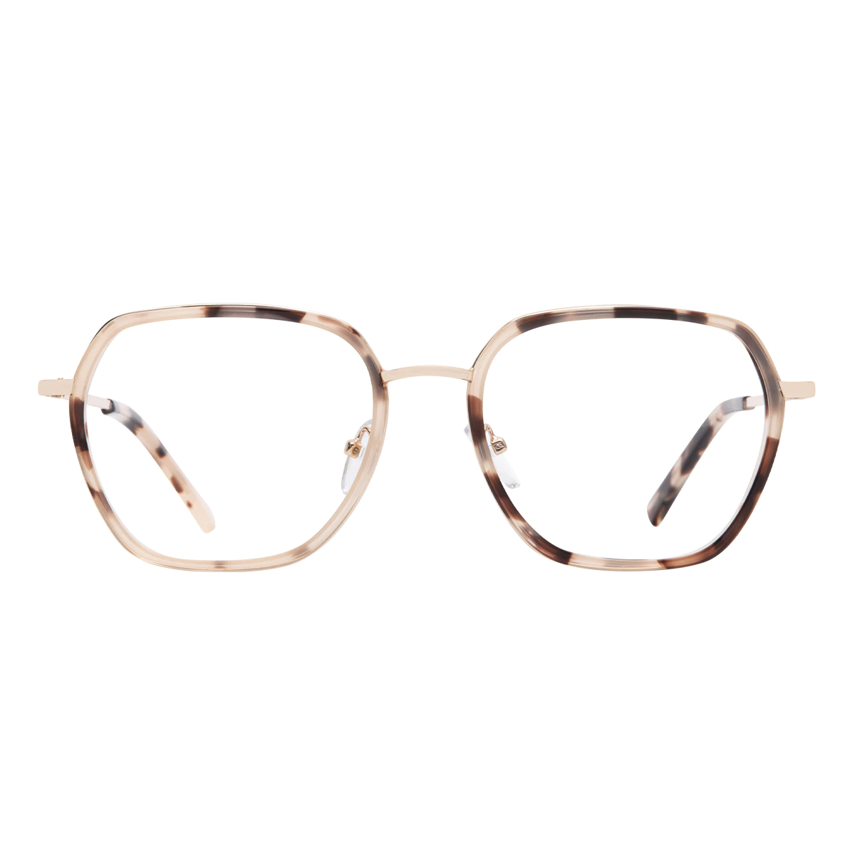 Introducing a stunning combination of pink gold and tortoiseshell, these full-rim geometric eyeglasses are designed to captivate. The warm tones add a touch of glamour, while the acetate and metal construction ensures lasting quality and comfort. A perfect choice for those who love to stand out with subtle elegance.