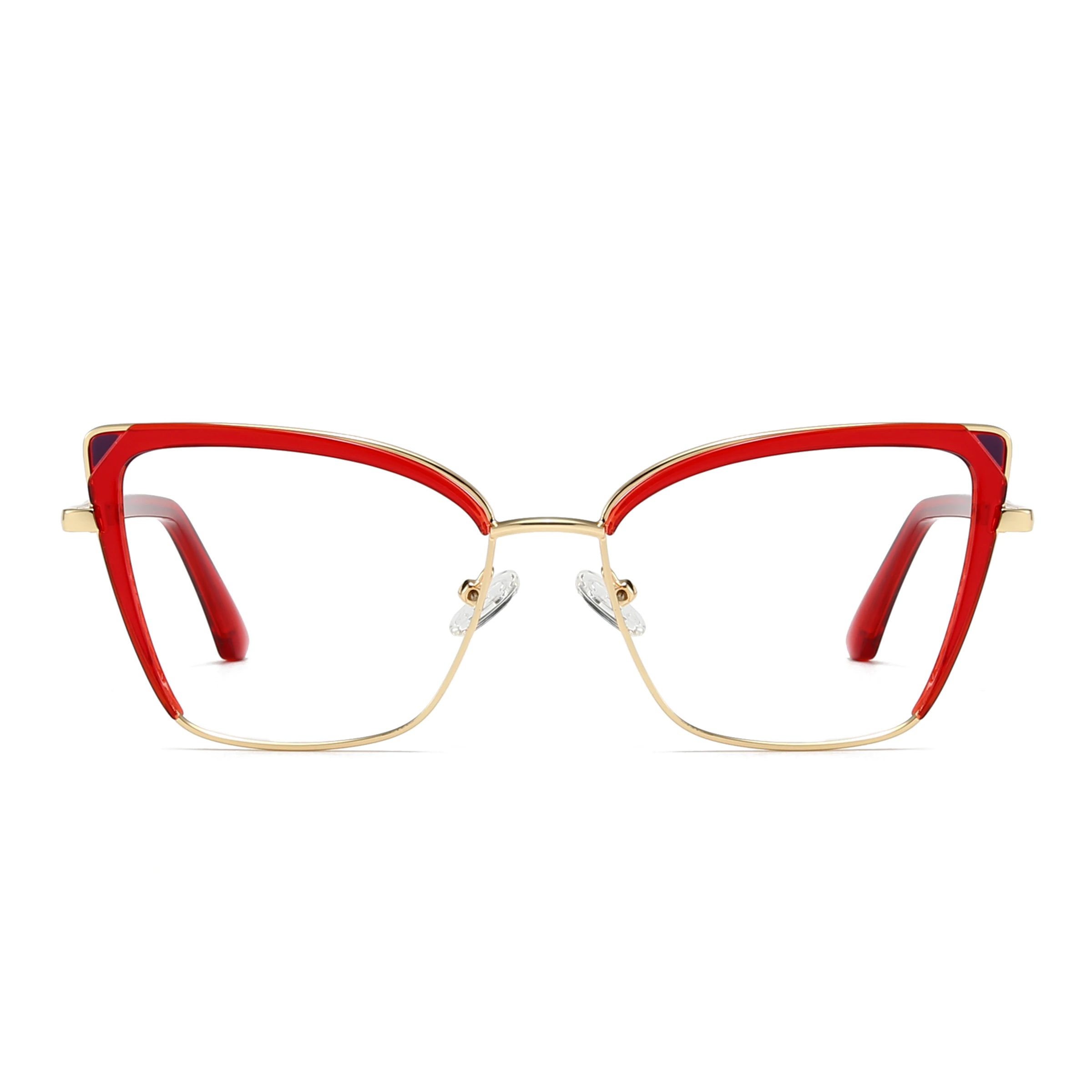 Make a bold statement with the Red-Gold cat-eye frames. The vibrant red color captures attention, while the gold accents add a touch of luxury. Constructed from durable TR90 material, these frames are perfect for those who seek to combine comfort with a striking style, ideal for both day-to-day wear and special occasions.