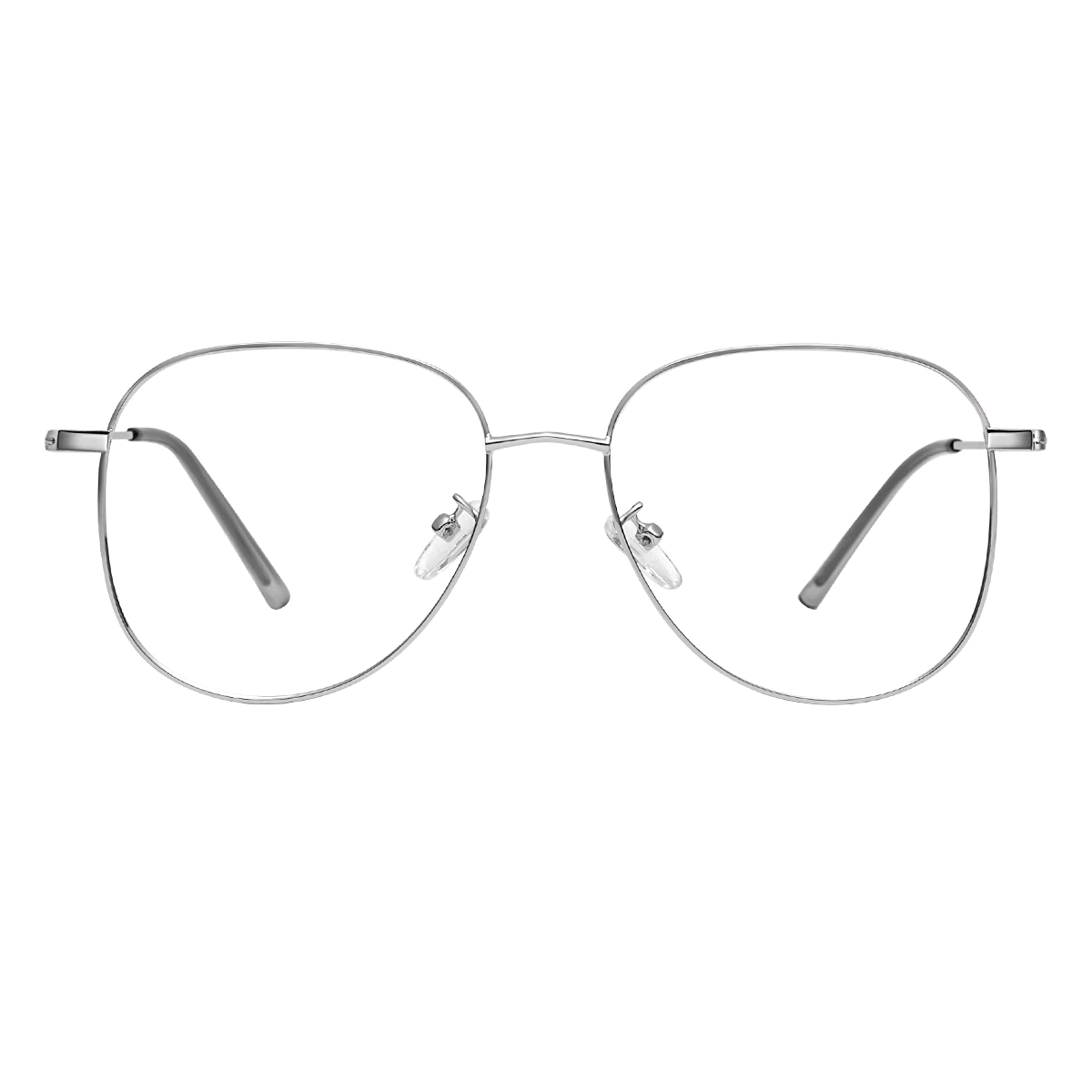 These silver aviator-style eyeglasses feature a sleek, ultra-thin metal frame with softly rounded edges for a contemporary twist on a classic design. Lightweight and versatile, they offer a minimalist yet stylish look—ideal for everyday wear with effortless sophistication.