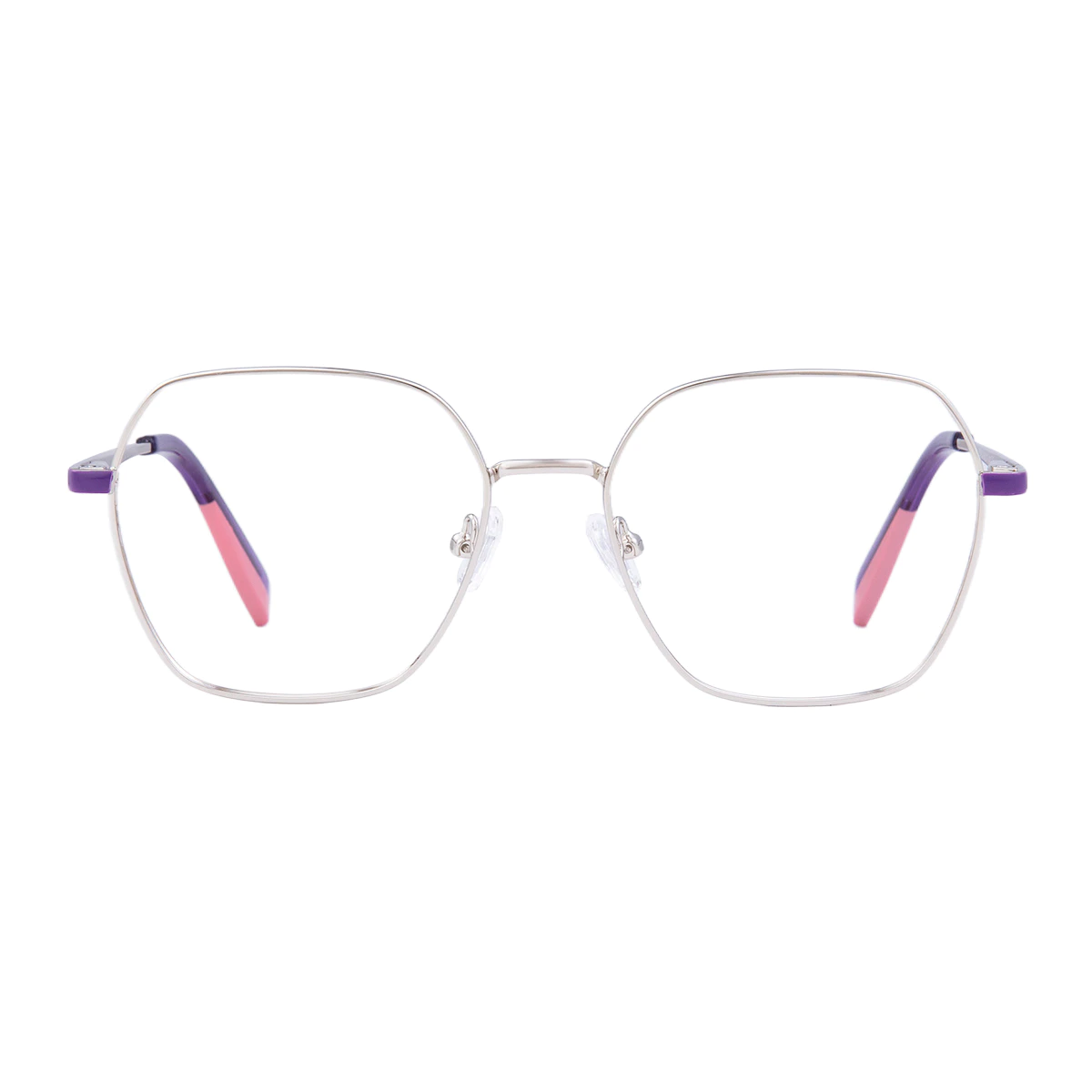 Add a pop of color to your look with these silver-purple geometric eyeglasses. The full-rim metal frame provides a sleek and durable design, while the soft purple accents add a subtle yet stylish flair, perfect for any occasion.