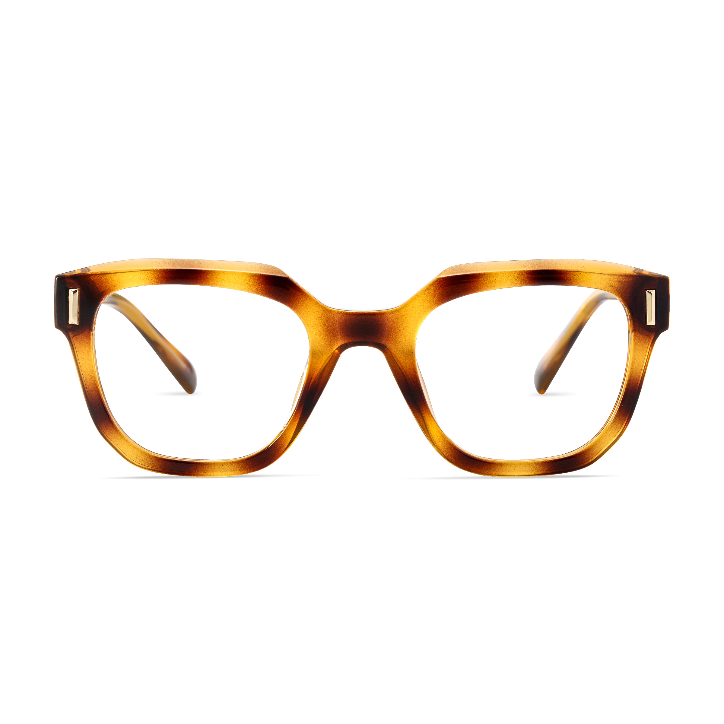 Square tortoiseshell eyeglasses feature warm amber and brown tones with a classic full-rim design. The lightweight frame offers comfortable all-day wear, perfect for both professional settings and casual occasions. The square shape enhances facial structure with timeless elegance.