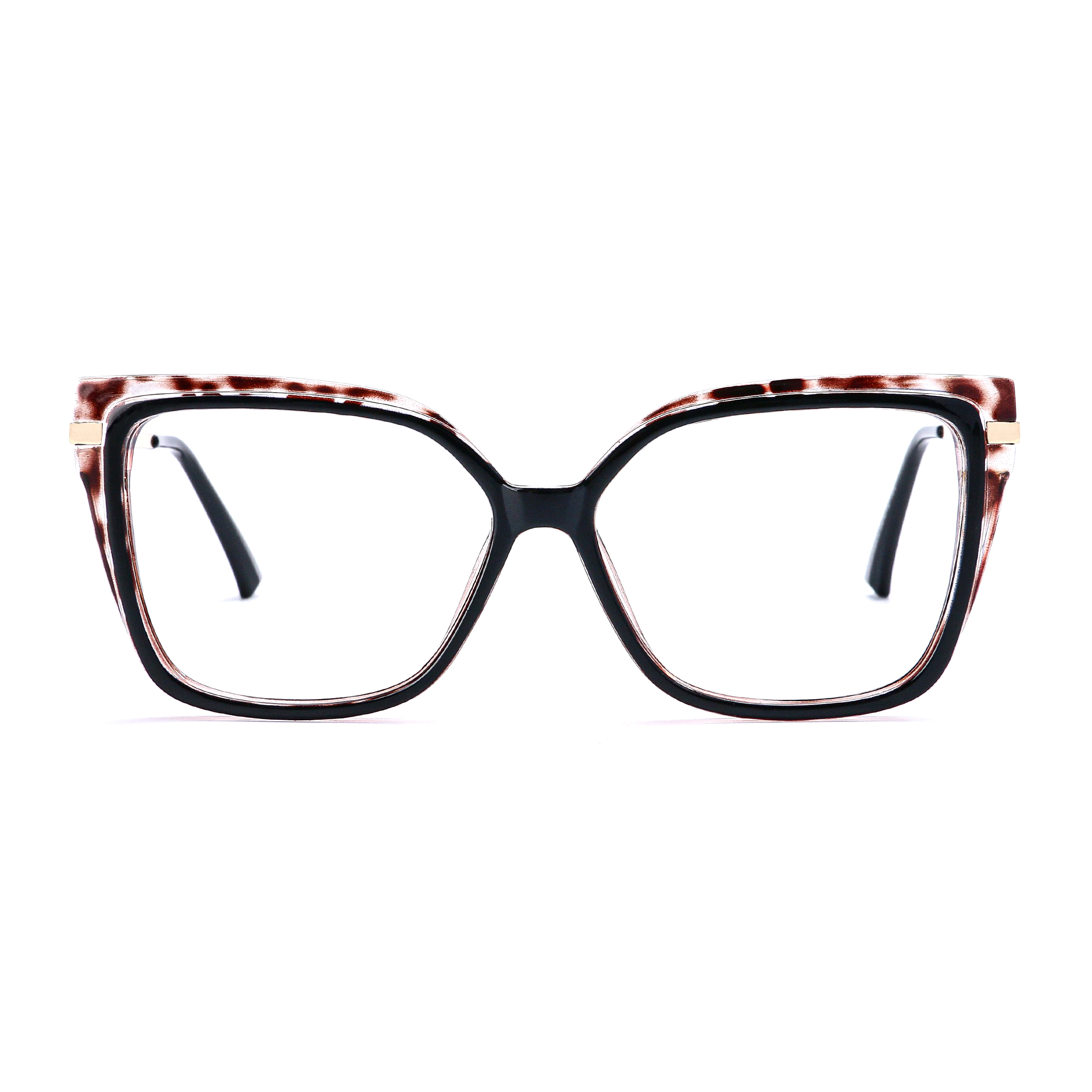 Experience a sophisticated twist with these black tortoiseshell square eyeglasses. The classic tortoiseshell pattern in a deep black hue offers a refined style that complements any outfit effortlessly.