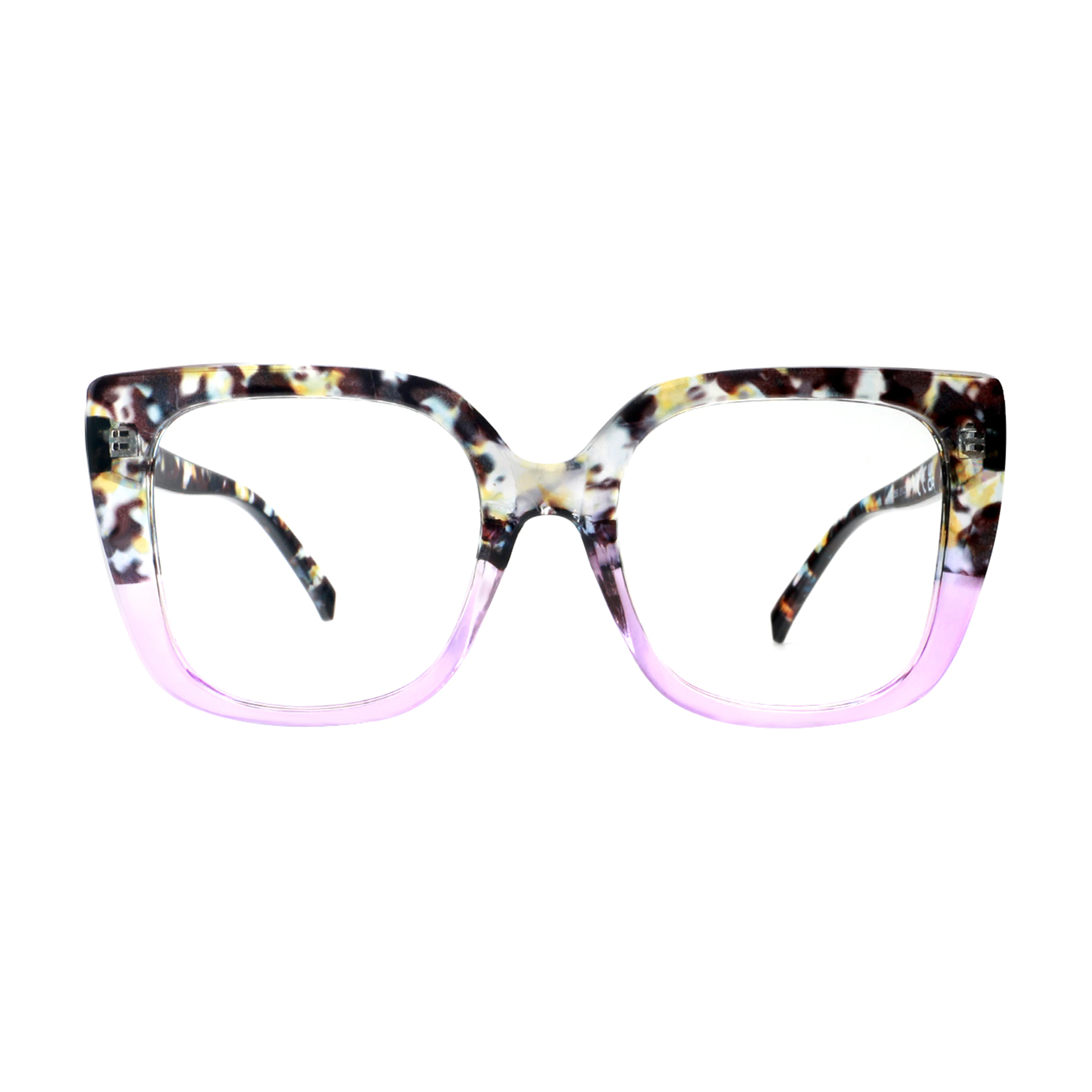 A striking mix of purple and tortoiseshell in these square PC frames creates an eye-catching design. The rich purple accents against the warm tortoiseshell base add a touch of sophistication to your eyewear collection.