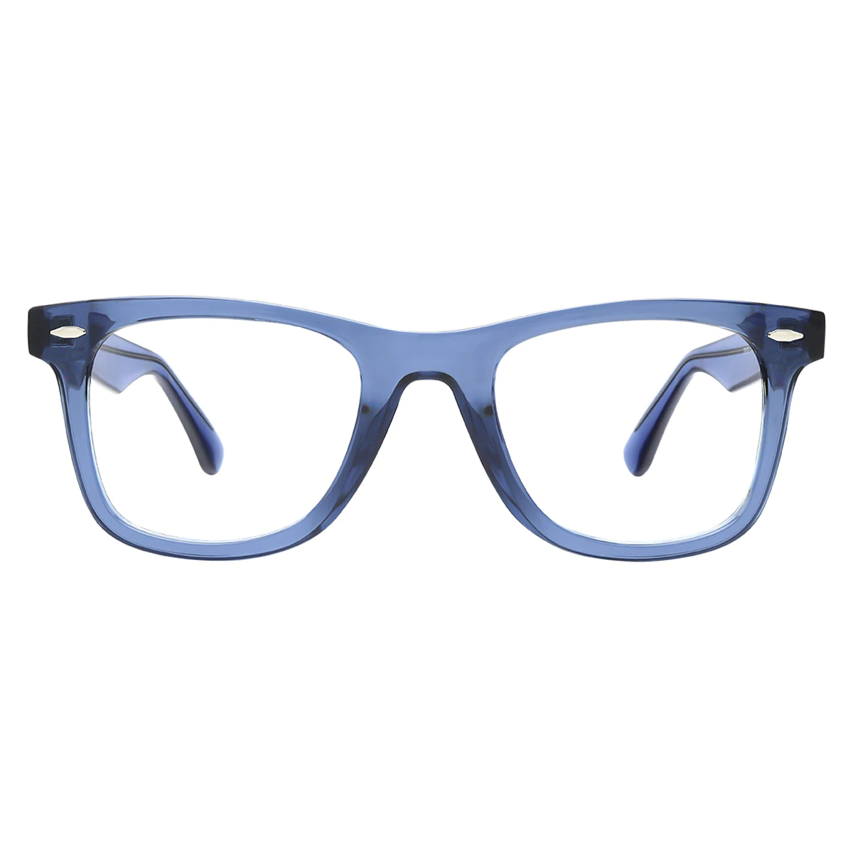 The Transparent Blue square frame offers a fresh, contemporary look with a pop of color. Its translucent blue design adds a modern touch, making it perfect for those looking to add vibrancy to their eyewear.