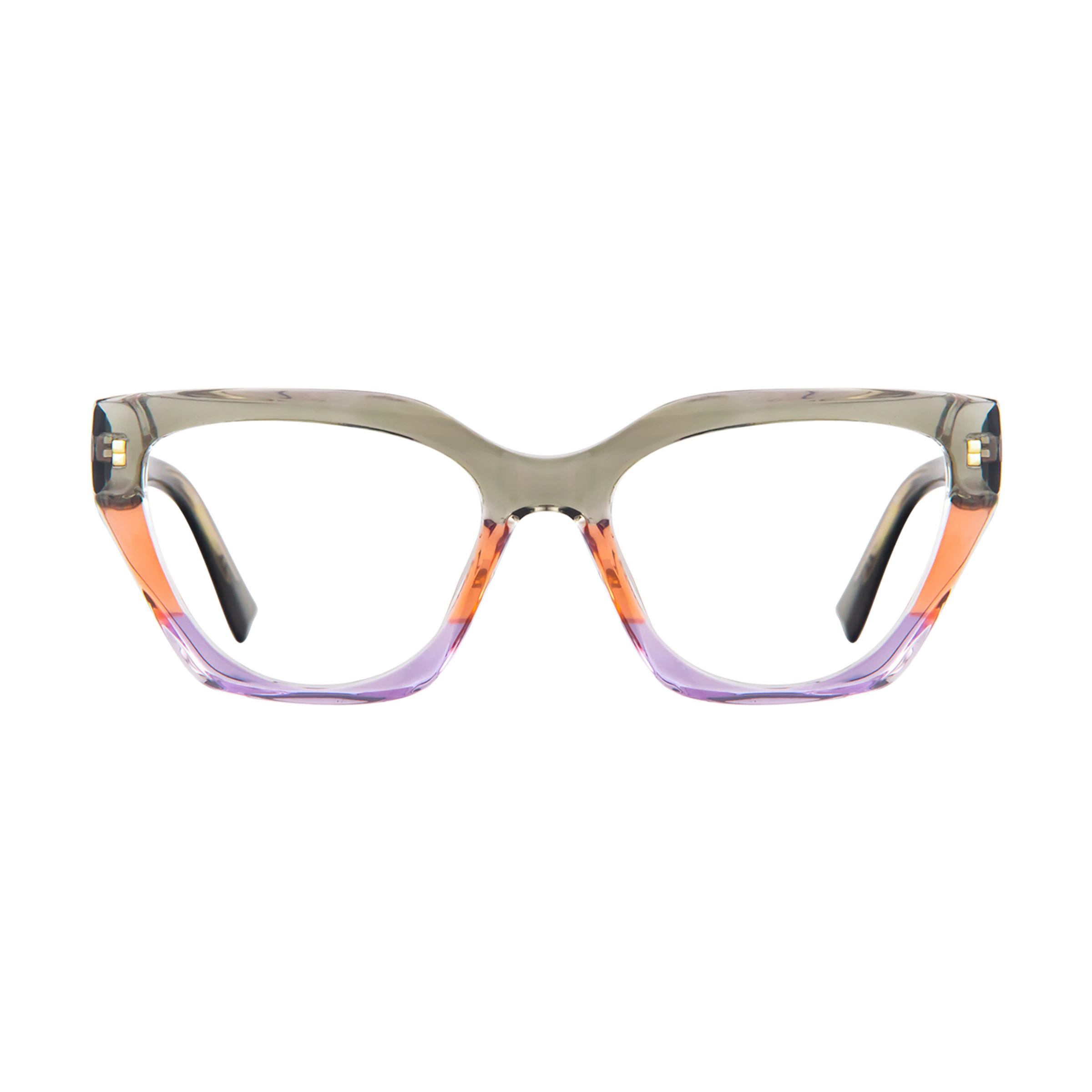 The Transparent Green/Purple frames are a bold and trendy choice, with their unique color combination adding a vibrant yet stylish edge. The green and purple hues blend harmoniously to create a striking look that is perfect for making a fashion statement.