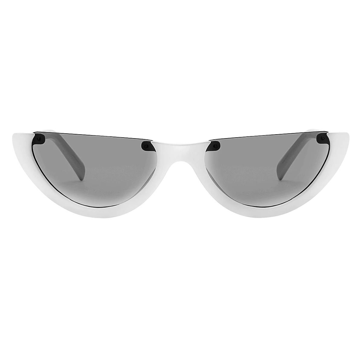 Make a bold statement with our white semi-rimless cat-eye sunglasses. The striking white frames add a fresh, modern touch to any outfit. Crafted from durable PC, these sunglasses offer a comfortable fit while ensuring you stand out in style on sunny days.