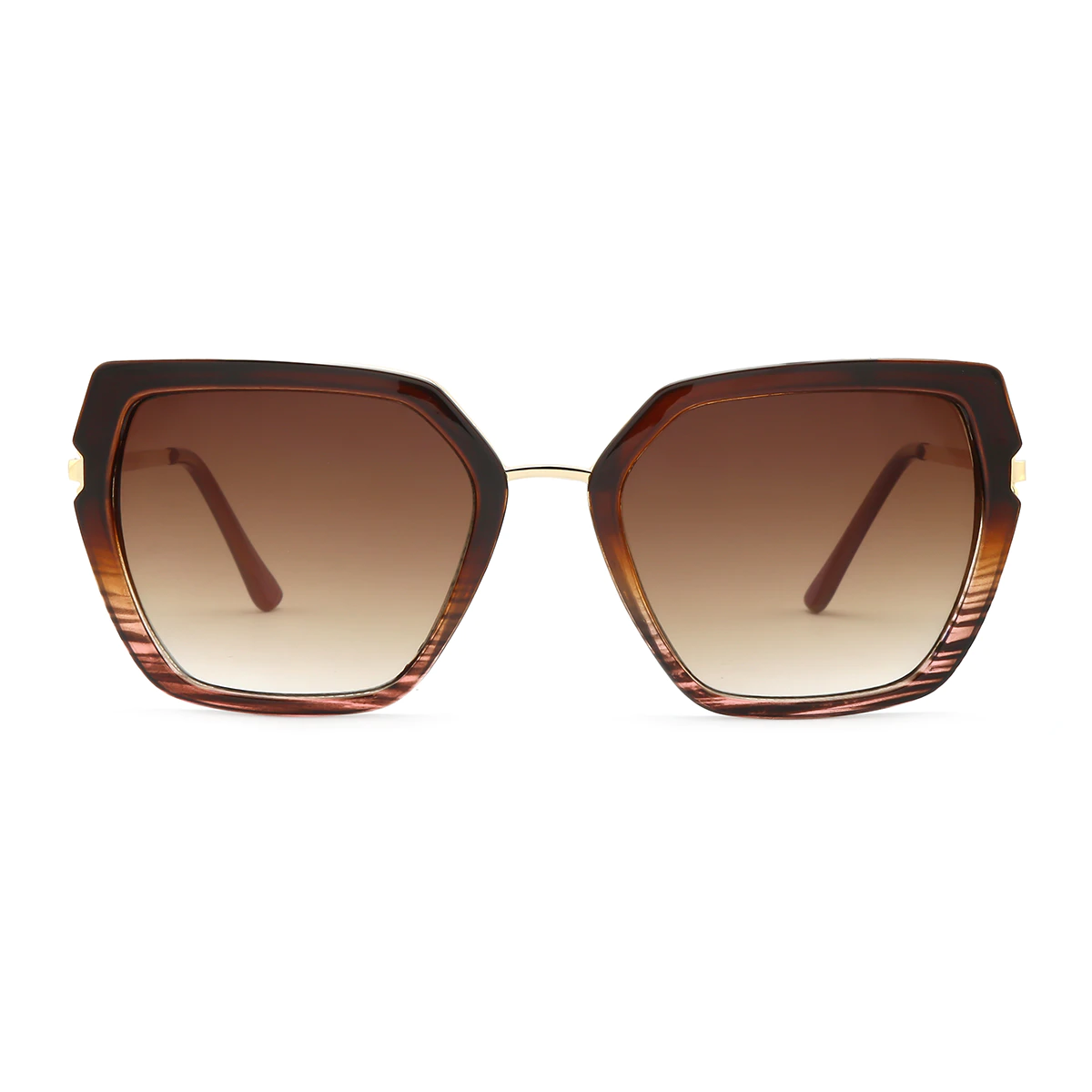 Step up your fashion game with our brown full-rim geometric sunglasses. Made from a blend of PC and metals, these stylish shades offer a modern look while ensuring durability. The warm brown tone complements various outfits, providing both flair and UV protection for sunny days.