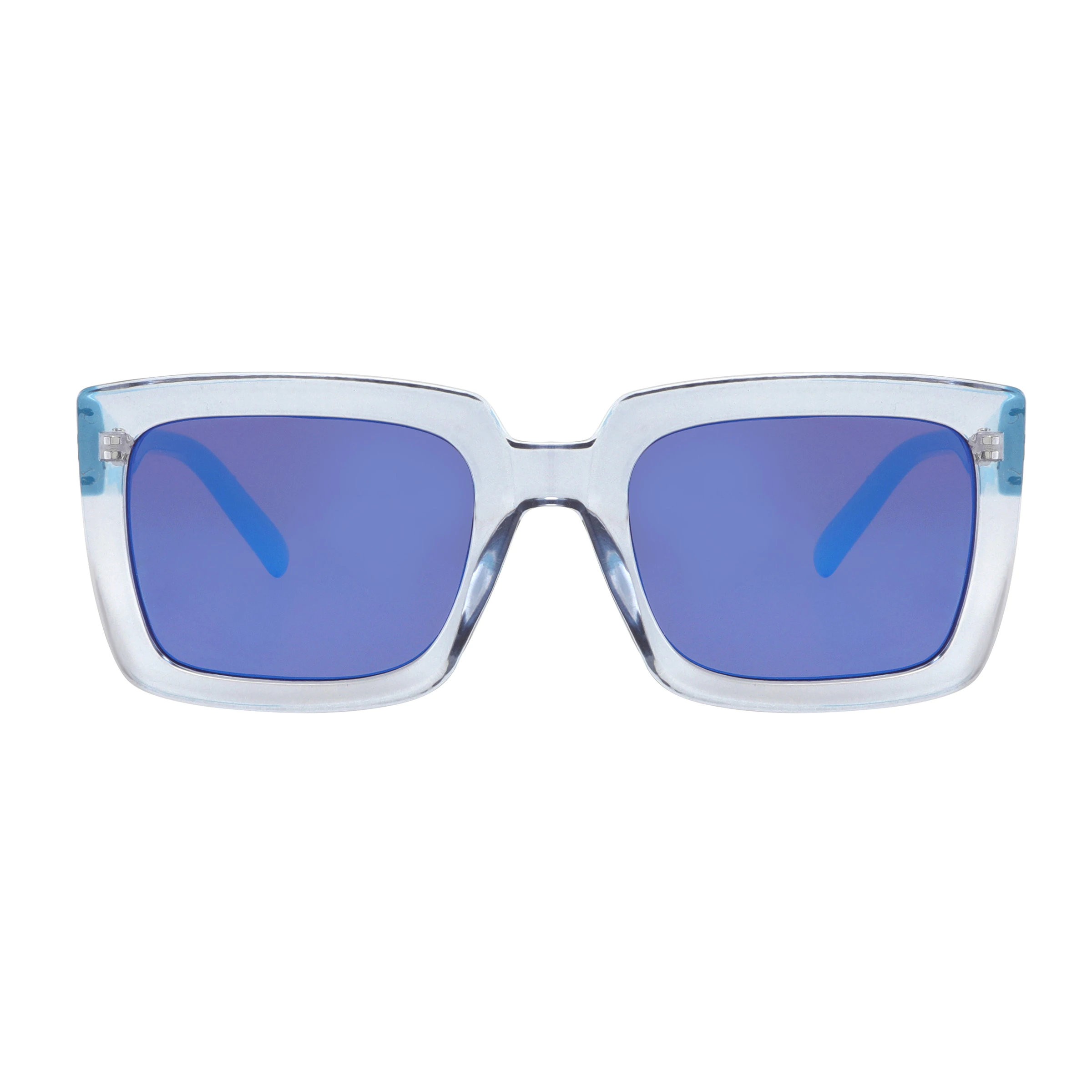 The transparent blue frame adds a fresh, trendy touch, offering a bold yet minimalist style ideal for spring picnics.